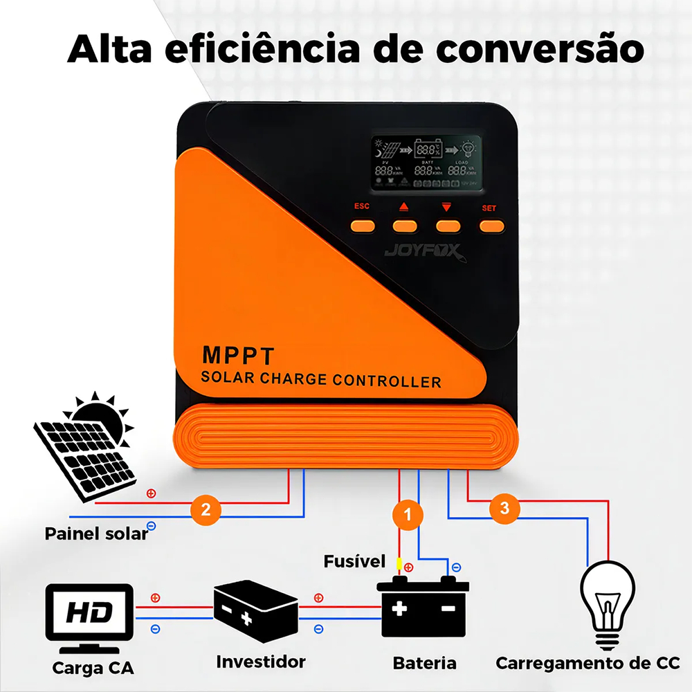 Joyfox Controlador De Carga Painel Solar 100% Mppt 40a Usb Lcd 12/24vdc 100voc