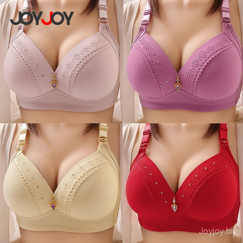 Joyjoy Sutiã Push Up Feminino Plus Size Ajustável Copo Completo Levanta Peito Suporte Superior Costas Sem Anel de Aço