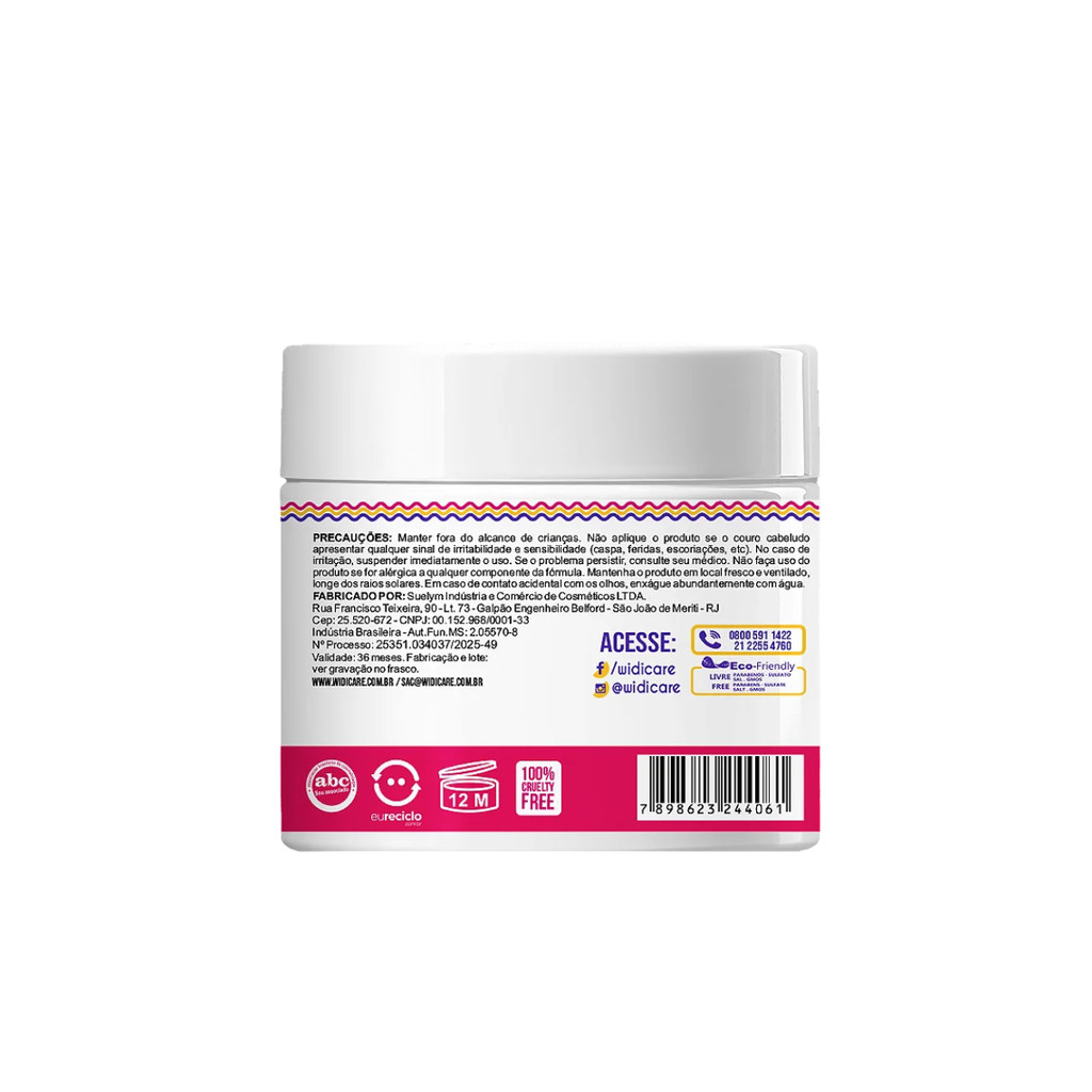 Máscara Juba Butter Oil Super Hidratante Ação Condicionante 300g – Widi Care A Máscara Juba Butter Oil Super Hidratante foi desenvolvida para oferecer uma nutrição intensa e ação condicionante para cabelos ondulados, cacheados e crespos. Com uma combinação poderosa de manteigas e óleos vegetais, ela ajuda a recuperar fios ressecados, porosos e sem vida, promovendo brilho, maciez e definição. ???? Principais Benefícios Nutre profundamente os fios secos e fragilizados Condiciona e facilita o desembaraço Devolve o brilho e a maleabilidade natural Reduz o frizz e ajuda na definição Ideal para uso na etapa de nutrição do cronograma capilar Liberada para técnicas Low Poo e No Poo ???? Ativos Poderosos Manteiga de Karité: hidrata e protege contra o ressecamento Manteiga de Ucuuba: promove elasticidade e nutrição Manteiga de Pistache: forma um filme nutritivo, protegendo os fios Óleo de Coco e Óleo de Babaçu: emoliência, brilho e selagem Óleo de Jojoba: equilibra a oleosidade e proporciona toque sedoso ????♀️ Modo de Uso Após lavar os cabelos, aplique a máscara nos fios úmidos, do comprimento às pontas. Enluve mecha por mecha e deixe agir de 5 a 10 minutos. Enxágue bem e finalize como preferir. ???? Informações Técnicas Peso: 300g pH: 3,5 – 4,5 Indicação: cabelos de curvaturas 2A a 4C Fórmula vegana, sem sulfatos, petrolatos e parabenos Produto não testado em animais A Máscara Juba Butter Oil Super Hidratante Ação Condicionante é a escolha perfeita para restaurar fios porosos e desnutridos, deixando o cabelo leve, saudável e com brilho natural.