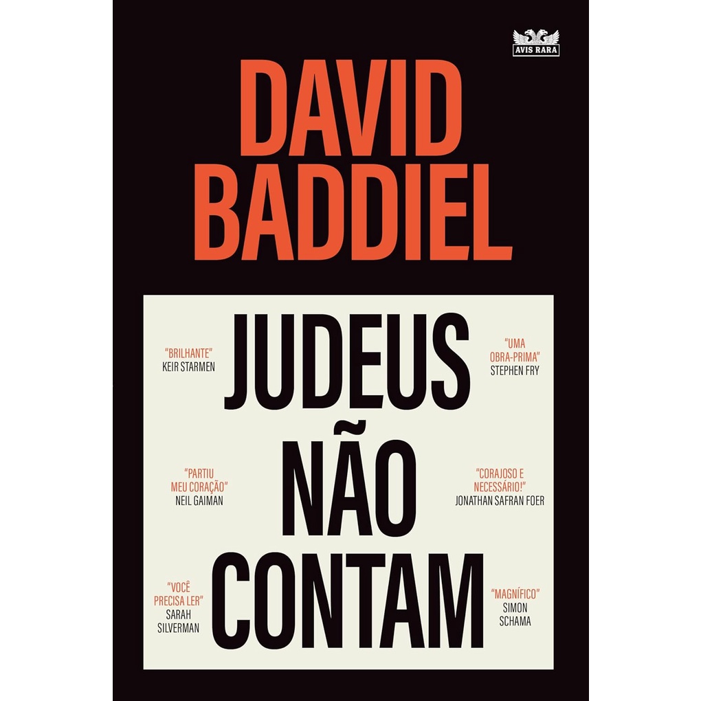 ALGUNS PRECONCEITOS SÃO PERMITIDOS. E HÁ MOVIMENTOS SOCIAIS CONIVENTES COM ISSO. O livro certo para este momento da história. Pessoas que lutam pelo bem combatem a homofobia, a deficiência, a transfobia e, principalmente, o racismo. A afirmação do comediante e escritor David Baddiel, porém, deixa claro que um tipo de racismo foi excluído dessa luta. Em sua combinação única de raciocínio, polêmica, experiência pessoal e humor, ele demonstra que aqueles que se consideram do lado certo da história muitas vezes ignoram a história do antissemitismo. Ele descreve por que e como, em uma época de intensa consciência das minorias, os judeus não contam como uma minoria real. “Em palavras rápidas, espirituosas e ocasionalmente furiosas, David Baddiel colocou em foco um dos pontos cegos mais controversos atualmente e expôs uma verdade indiscutível e vergonhosa: para muitos progressistas, de outra forma vociferantes em seu antirracismo, os judeus não contam. Está tudo exposto aqui em uma publicação genuinamente importante de trabalho sociopolítico que deveria vir com um aviso, como uma ordem sussurrada em tom de ameaça, dizendo ‘Você tem que ler isso. Realmente muda tudo’, como a maravilhosa e preocupante bomba da verdade que representa.” – CAITLIN MORAN, autora de Do que é feita uma garota “Acho que nunca fiquei tão grato a alguém por escrever um livro. Judeus não contam é incisivo, urgente, surpreendentemente engraçado e conciso. Precisa ser lido.” – JAY RAYNER, jornalista e crítico gastronômico