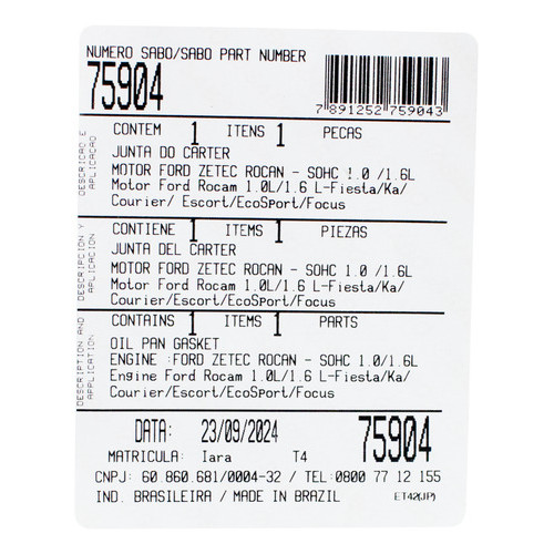 Junta Do Cárter Fiesta 1.0 1.6 8v Zetec Rocam Sabó Original
