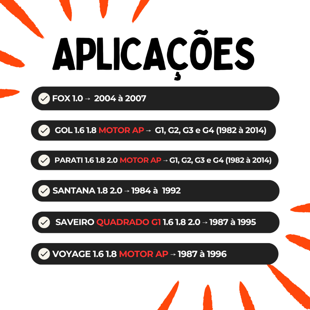 PRODUTO NOVO ORIGINAL COFAP, COM NOTA FISCAL E GARANTIA Junta Homocinética para Gol Saveiro Parati Voyage Santana... 1.6 1.8 2.0 AP (G1 G2 G3 G4) 1982 à 2014 Para o Fox --> ***SOMENTE 1.0 - 2004 à 2007*** --> 30 ESTRIAS INTERNAS E 22 ESTRIAS EXTERNAS <-- Aplicações VOLKSWAGEN: FOX 1.0 ***MOTOR EA111*** --> 2004, 2005, 2006, 2007 GOL 1.6 1.8 ***MOTOR AP*** --> 1982, 1983, 1984, 1985, 1986, 1987, 1988, 1989, 1990, 1991, 1992, 1993, 1994, 1995, 1996, 1997, 1998, 1999, 2000, 2001, 2002, 2003, 2004, 2005, 2006, 2007, 2008, 2009, 2010, 2011, 2012, 2013, 2014 PARATI 1.8 1.6 2.0 ***MOTOR AP*** (SEM ABS) --> 1986, 1987, 1988, 1989, 1990, 1991, 1992, 1993, 1994, 1995, 1996, 1997, 1998, 1999, 2000, 2001, 2002, 2003, 2004, 2005, 2006, 2007, 2008, 2009, 2010, 2011, 2012 PASSAT 1.6 1.8 ***MOTOR AP*** --> 1987, 1988 QUANTUM 1.8 2.0 ***MOTOR AP*** --> 1986, 1987, 1988, 1989, 1990, 1991, 1992 SANTANA ***MOTOR AP*** --> 1984, 1985, 1986, 1987, 1988, 1989, 1990, 1991, 1992 SAVEIRO 1.6 1.8 2.0 ***MOTOR AP*** --> 1987, 1988, 1989, 1990, 1991, 1992, 1993, 1994, 1995 VOYAGE 1.6 1.8 ***MOTOR AP*** --> 1987, 1988, 1989, 1990, 1991, 1992, 1993, 1994, 1995, 1996 FORD: ROYALE 1.8 2.0 ***MOTOR AP*** --> CÂMBIO MANUAL 02/1992, 11/1992 VERSAILLES 1.8 2.0 ***MOTOR AP*** --> CÂMBIO MANUAL 06/1991, 11/1992 Códigos Originais: NAKATA NJH25129A AXIOS 546.6001 IMA AL-1010 / AL-1012 / AL-1157 SKF VKJA 41023 A / VKJA41008 A SPICER 1391569 Dimensões: EMBALAGEM: 11 x 1,74 x 22 cm PESO: 1,100Kg ATENÇÃO: ANTES DE EFETUAR A COMPRA, SUGERIMOS QUE FAÇA UMA COMPARAÇÃO ENTRE A PEÇA QUE ESTÁ/ESTAVA SENDO UTILIZADA NO SEU VEÍCULO COM AS INFORMAÇÕES DESCRITAS NESTE ANÚNCIO. Conteúdo do Pacote: 01 JUNTA HOMOCINÉTICA 30 ESTRIAS INTERNAS E 22 ESTRIAS EXTERNAS, TRAVA INTERNA, SEM ABS. 01 COIFA7891579015679 01 GRAXA (COD INT 5429 - COD FAB. JHC01105) IMAGENS E VÍDEO REAIS, LEIA COM ATENÇÃO A DESCRIÇÃO E APLICAÇÕES DO PRODUTO IMPORTANTE - Todos produtos são postados em até 24h úteis! - Recomendamos que a instalação seja feita por profissional especializado, não nos responsabilizamos pelo mau uso ou má instalação do produto. - Todo o transporte e logística é de responsabilidade da Shopee/Envios. Por isso não nos responsabilizamos por quaisquer custos associados a remoção, substituição ou transporte da peça defeituosa. CASO NECESSITE DE OUTRO PRODUTO, POR FAVOR NOS CONTATE, POIS PODEMOS CRIAR UM NOVO ANÚNCIO COM OUTRO PRODUTO DE SUA NECESSIDADE. Srs. Clientes, em caso de DÚVIDAS tire-as ANTES de clicar em comprar, estamos a disposição para sanar todas as suas dúvidas, basta fazer uma pergunta neste anúncio que responderemos o mais breve possível. AGUARDAMOS ANSIOSOS PELA SUA COMPRA, MUITO OBRIGADO!