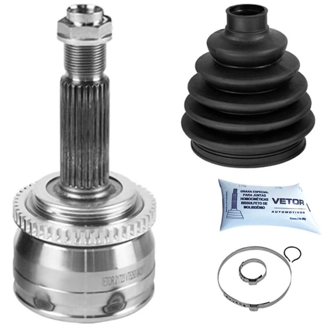 NÃO VENDEMOS PARA PESSOA JURÍDICA CONSUMIDOR. PRODUTO NOVO. Aplicação TOYOTA COROLLA FIELDER SW 1.8/1.8 XEI FLEX AUT. 2005 até 2008 COROLLA FIELDER SW 1.8/1.8 XEI FLEX MEC 2005 até 2008 COROLLA FIELDER SW S 1.8 16V 136CV AUT 2007 COROLLA FIELDER SW S 1.8 16V 136CV MEC 2007 COROLLA FIELDER SW SE-G 1.8 FLEX 16V AUT 2008 COROLLA GLI 1.8 FLEX 16V AUT. 2010 até 2014, 2019 COROLLA GLI 1.8 FLEX 16V MEC. 2010 até 2014 COROLLA S 1.8 16V 136CV AUT 2007 COROLLA S 1.8 16V 136CV MEC 2007 COROLLA SE-G 1.8 16V MEC. 2002 COROLLA SE-G 1.8/1.8 FLEX 16V AUT. 2002 até 2010 COROLLA XEI 1.8/1.8 FLEX 16V AUT. 2002 até 2010 COROLLA XEI 1.8/1.8 FLEX 16V MEC. 2002 até 2010 COROLLA XLI 1.6 16V 110CV AUT. 2003 até 2010 COROLLA XLI 1.6 16V 110CV MEC. 2003 até 2007 COROLLA XLI 1.8/1.8 FLEX 16V AUT. 2002, 2008 até 2014 COROLLA XLI 1.8/1.8 FLEX 16V MEC. 2002, 2008 até 2014 Conteúdo Da Embalagem 1 Junta Homocinética 1 Kit reparo Cor do Produto No Tipo de Veículo para Carros Marca Distribuidora de Auto Peças desde 1982, a Vetor Automotivos, possui uma ampla variedade de linhas de lâmpadas, buzinas, palhetas, rolamentos, tensores, transmissão, suspensão, injeção e ignição no total de mais de 4.000 itens, com inovação e superação contínua. O Produto A junta homocinética, tratada apenas como junta, ou junta CV, tem uma atuação muito importante para o funcionamento do veículo. Ela tem a função de transmitir para as rodas a tração do veículo, determinada pelas marchas, para que o carro tenha maior ou menor força ao se locomover, permitindo que as rodas girem recebendo força, fazendo o veículo andar. Sem as juntas homocinéticas, não seria possível transmitir a tração às rodas do veículo quando elas estão esterçadas ou quando recebem impacto de irregularidades da pista. A junta fica localizada entre a transmissão e os eixos de transmissão, os quais são ligados às rodas pelas juntas externas. Importante • Recomendamos que os produtos sejam instalados por profissionais especializados e não nos responsabilizamos pelo mau uso ou instalação indevida, causando a perda da garantia. • Todas as informações divulgadas são de responsabilidade do fabricante/fornecedor. • Verifique com os fabricantes do produto e de seus componentes eventuais limitações à utilização de todos os recursos e funcionalidades. • Garantia: 6 Meses • Valor referente ao kit • Imagem meramente ilustrativa • Prazo de troca e devolução: 7 dias a partir do recebimento do produto - Lei nº 8.078 EAN 7898507319076 Código do Fabricante VT5071 Freio ABS Sim Estrias Internas 23 Estrias Externas 26