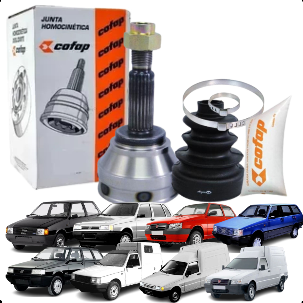 Para melhor visibilidade da peça preparamos um vídeo logo após as imagens. Este anúncio contém os seguintes produtos: 1 Junta homocinetica Original. Fabricante Junta homocinetica: Cofap Produtos novos, com 90 dias de garantia. Este produto se aplica a esses veículos: Montadora: Fiat Veiculo: Uno; Motores: 1.0, 1.3, 1.5; Anos de fabricação: 1984, 1985, 1986, 1987, 1988, 1989, 1990, 1991, 1992, 1993, 1994, 1995, 1996, 1997; Montadora: Fiat Veiculo: Uno; Motores: 1.0; Anos de fabricação: 2005, 2006, 2007, 2008, 2009, 2010, 2011, 2012, 2013; Montadora: Fiat Veiculo: Elba; Motores: 1.3, 1.5, 1.6; Anos de fabricação: 1984, 1985, 1986, 1987, 1988, 1989, 1990, 1991, 1992, 1993, 1994, 1995, 1996, 1997; Montadora: Fiat Veiculo: Fiorino; Motores: 1.3, 1.5; Anos de fabricação: 1986, 1987, 1988, 1989, 1990; Montadora: Fiat Veiculo: Fiorino; Motores: 1.5; Anos de fabricação: 1991, 1992, 1993, 1994, 1995, 1996, 1997; Montadora: Fiat Veiculo: Fiorino; Motores: 1.3; Anos de fabricação: 1998, 1999, 2000, 2001, 2002, 2003, 2004, 2005, 2006, 2007, 2008, 2009, 2010, 2011, 2012, 2013; Outras características; Inclui sensor ABS: Não Inclui abraçadeira: Sim Inclui coifa: Sim Inclui graxa: Sim Quantidade de dentes internos: 20 Quantidade de dentes externos: 22 Dúvidas frequentes: O Produto é original? Sim, nós só trabalhamos com distribuidores representados pelos fabricante, ou compramos diretamente dos fabricantes, gerando confiança da originalidade do produto. Tem garantia? Sim, todos nossos produtos têm 3 Meses (90 dias) de garantia contra defeitos de fabricação, exceto os amortecedores que possuem 2 anos de garantia total. O produto é igual ao da foto? Sim. Todas as fotos são fiéis ao que você irá receber, e para facilitar a sua compra ilustramos também o veículo em que se aplica o produto. Em quanto tempo recebo minha compra? É muito simples, basta colocar seu CEP no calculador de frete do anuncio. Como faço para saber se o produto deste anúncio se aplica ao meu veículo? Você pode conferir se o produto se aplica no seu carro através da descrição do anúncio no item: “Aplicação dos Veículos”. Caso tenha alguma dúvida, entre em contato com nossa equipe e os profissionais qualificados irão te orientar em qualquer dúvida, estamos sempre a disposição. Tem alguma dúvida sobre o produto ou sobre a compra? Deixe sua pergunta abaixo, que responderemos prontamente.