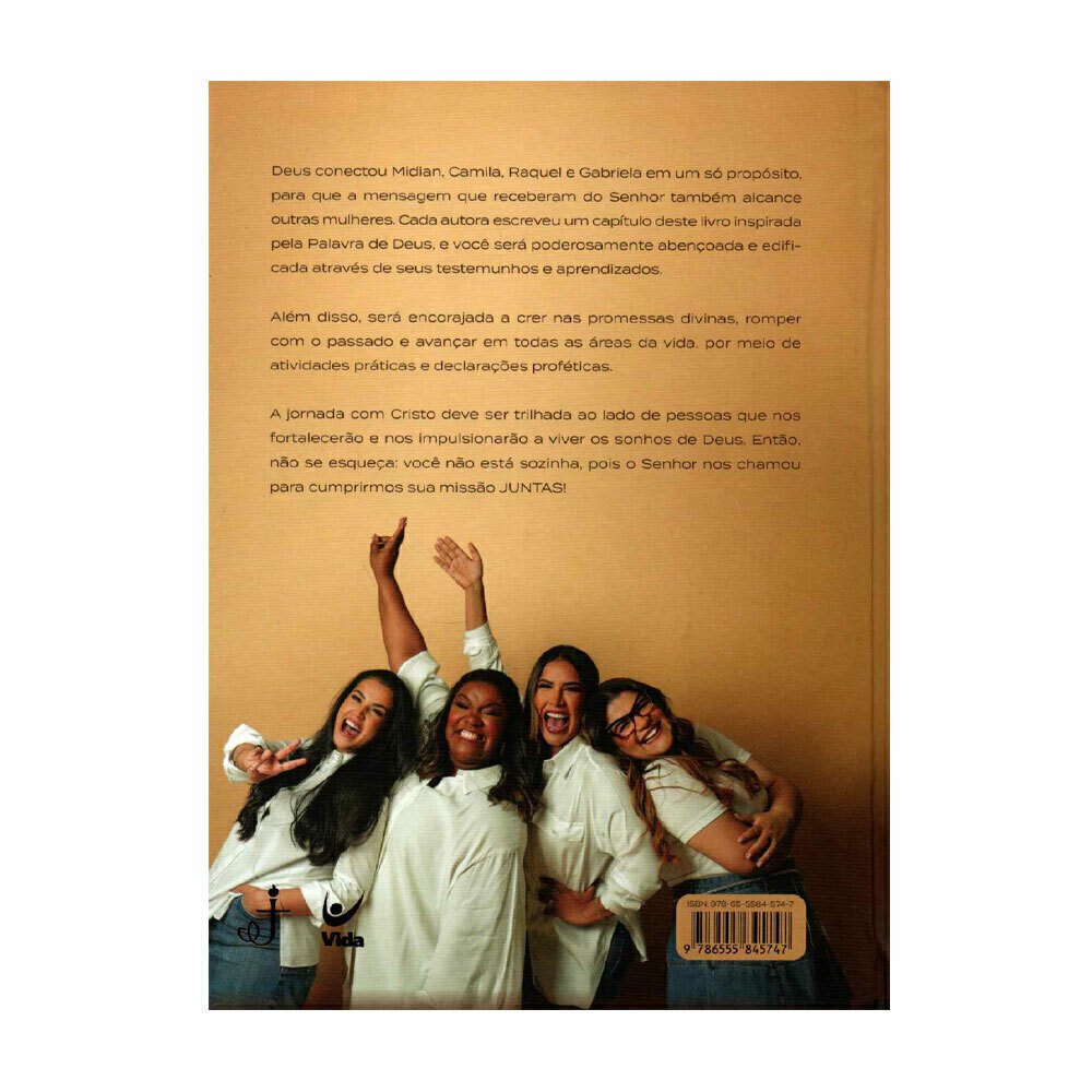 Deus conectou Midian, Camila, Raquel e Gabriela em um só propósito, para que a mensagem que receberam do Senhor também alcance outras mulheres. Cada autora escreveu um capítulo deste livro inspirada pela Palavra de Deus, e você será poderosamente abençoada e edificada através de seus testemunhos e aprendizados. Além disso, será encorajada a crer nas promessas divinas, romper com o passado e avançar em todas as áreas da vida, por meio de atividades práticas e declarações proféticas. A jornada com Cristo deve ser trilhada ao lado de pessoas que nos fortalecerão e nos impulsionarão a viver os sonhos de Deus. Então, não se esqueça: você não está sozinha, pois o Senhor nos chamou para cumprirmos sua missão JUNTAS! 16x21cm 208 Páginas