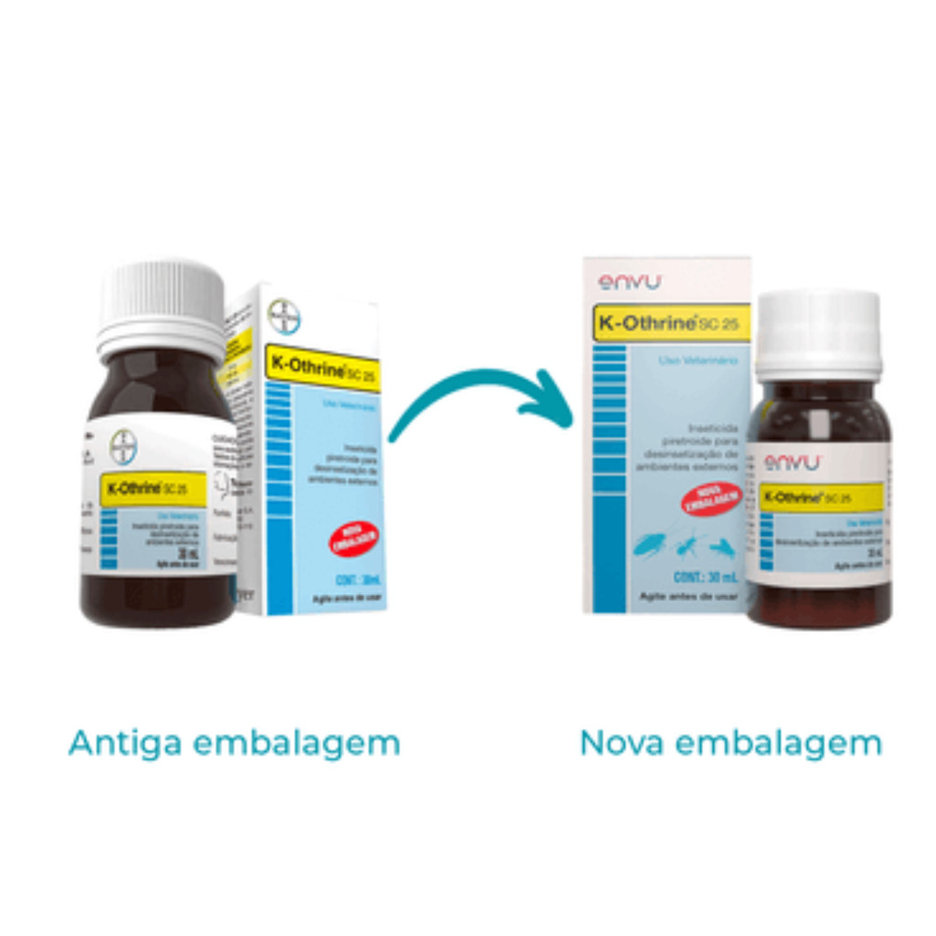 K-Othrine SC 25 30ml - EnvuK-Othrine SC 25 30ml é um inseticida de ação rápida e eficaz, desenvolvido para controle de pragas em ambientes internos e externos. Sua fórmula concentrada e tecnologia avançada garantem alta performance no combate a insetos, como moscas, mosquitos, baratas, formigas e outros tipos de pragas, proporcionando um controle prolongado e eficaz. Composição e TecnologiaPrincípio ativo: Deltametrina 25 g/L, um inseticida de amplo espectro da classe dos piretroides, que age sobre o sistema nervoso dos insetos, levando-os à morte rapidamente.Formulação: Suspensão concentrada (SC), que garante uma aplicação mais eficiente e controle prolongado contra diversas pragas.Características e BenefíciosAção rápida e residual: O K-Othrine SC 25 possui efeito imediato sobre os insetos, com uma ação residual que dura por dias após a aplicação, oferecendo um controle eficaz por um período prolongado.Amplo espectro de controle: Atua no combate a diversas pragas urbanas, como baratas, formigas, mosquitos, moscas, aranhas e outros insetos indesejados.Versatilidade de uso: Pode ser aplicado tanto em ambientes internos, como residências e comércios, quanto em áreas externas, como jardins, pátios e áreas abertas.Fácil aplicação: A suspensão concentrada facilita o preparo da solução, que pode ser aplicada por pulverização, garantindo uma distribuição uniforme e eficaz.Indicação de UsoControle de pragas em ambientes internos: Pode ser utilizado em cozinhas, quartos, banheiros, áreas de serviço, além de ambientes comerciais e industriais.Controle de pragas em áreas externas: Ideal para áreas de jardins, pátios, varandas e ao redor de edificações, combatendo formigas, mosquitos e outros insetos.Modo de UsoDiluição: Dilua o produto de acordo com as instruções do rótulo para preparar a solução correta. A quantidade de produto varia conforme o tipo de praga e o tamanho da área a ser tratada.Aplicação: Pulverize o produto diluído diretamente sobre as áreas afetadas ou áreas de tráfego frequente dos insetos, como frestas, ralos, rodapés e outros pontos de acesso.PrecauçõesManuseio: Utilize equipamentos de proteção, como luvas e máscara, durante a aplicação.Armazenamento: Conservar o produto em local seco e ventilado, longe de fontes de calor e de alimentos.ConclusãoK-Othrine SC 25 30ml - Envu é uma solução eficaz para o controle de diversas pragas urbanas, oferecendo um combate rápido e duradouro com uma fácil aplicação. Sua fórmula concentrada e versátil é ideal para quem busca resultados rápidos e de longo prazo, tanto em ambientes internos quanto externos. Proporcione mais conforto e segurança no seu ambiente com o K-Othrine SC 25!