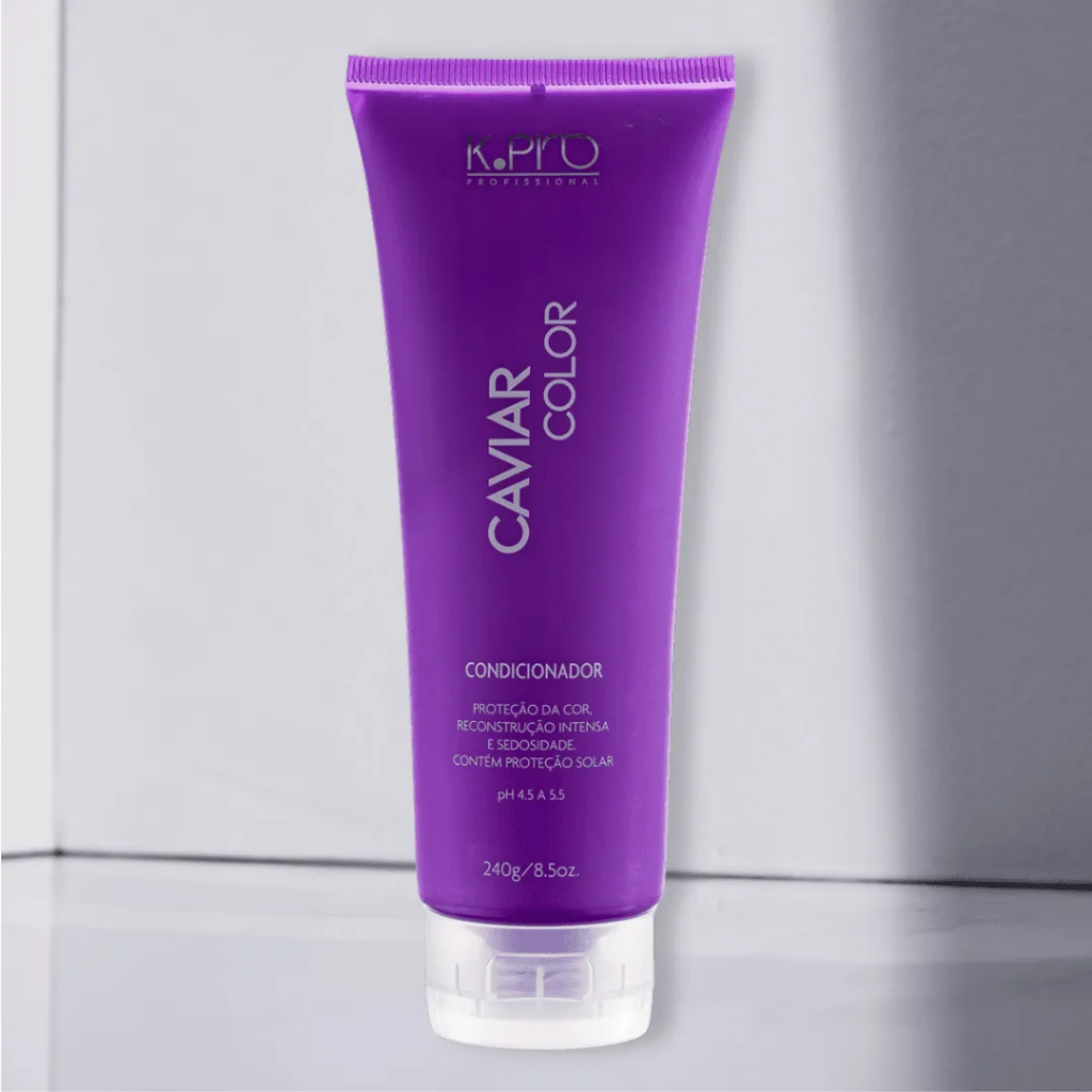 K.Pro Caviar Color Condicionador para cabelos coloridos e danificados. K.Pro Caviar Color Condicionador vem com antioxidantes, protege a cor e reconstrói os fios. K.Pro Caviar Color Condicionador promove uma hidratação e reparação profundas do cabelo. Coloração duradoura, intensa e com muito brilho! Ação Extrato de Caviar: rico em Aminoácidos e Proteínas que nutrem os fios, Ácidos Graxos essenciais que protegem os fios, Vitaminas e Antioxidantes. Heliogenol: extrato glicólico das sementes de Girassol, um poderoso antioxidante que preserva a beleza da cor. Manteiga de Murumuru: extraída de Amêndoas de palmeiras da Amazônia, rica em ácidos graxos. Repõe a hidratação natural dos fios. Queratina Hidrolisa e Quaternizada: reconstroem internamente e externamente os fios. Organosilicones: formam um filme protetor nos fios, preservando a saúde e cor dos mesmos. Filtro UV: protege dos efeitos nocivos do sol.