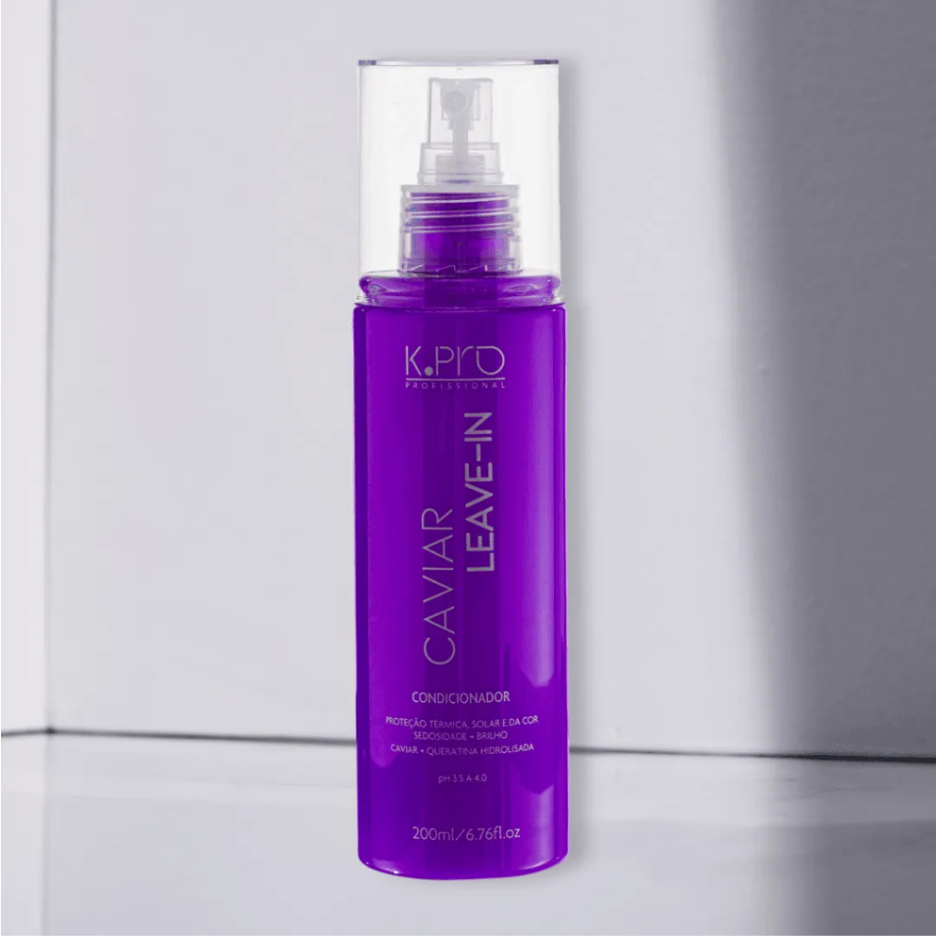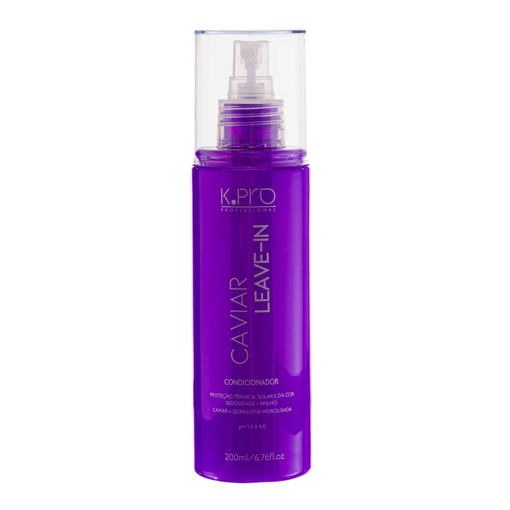 K.Pro Caviar Condicionador leave-in para todos os cabelos. K.Pro Caviar Spray Leave-in proporciona hidratação, brilho e sedosidade instantâneas. K.Pro Caviar Spray Leave-in protege os cabelos dos danos ambientais, restaura, desembaraça e ajuda a modelar os fios! Ação Extrato de Caviar: rico em Aminoácidos, Lipídios e Vitamina E antioxidante. Protege a cor natural ou artificial dos fios, evitando o desbotamento. Heliogenol: extrato glicólico das sementes de Girassol, um poderoso antioxidante que preserva a beleza da cor. Queratina Hidrolisada e Quaternizada: reconstroem internamente e externamente os fios. Proteção Térmica e Filtro UV: protegem dos danos solares e do calor térmico. pH: 3,5 - 4,0