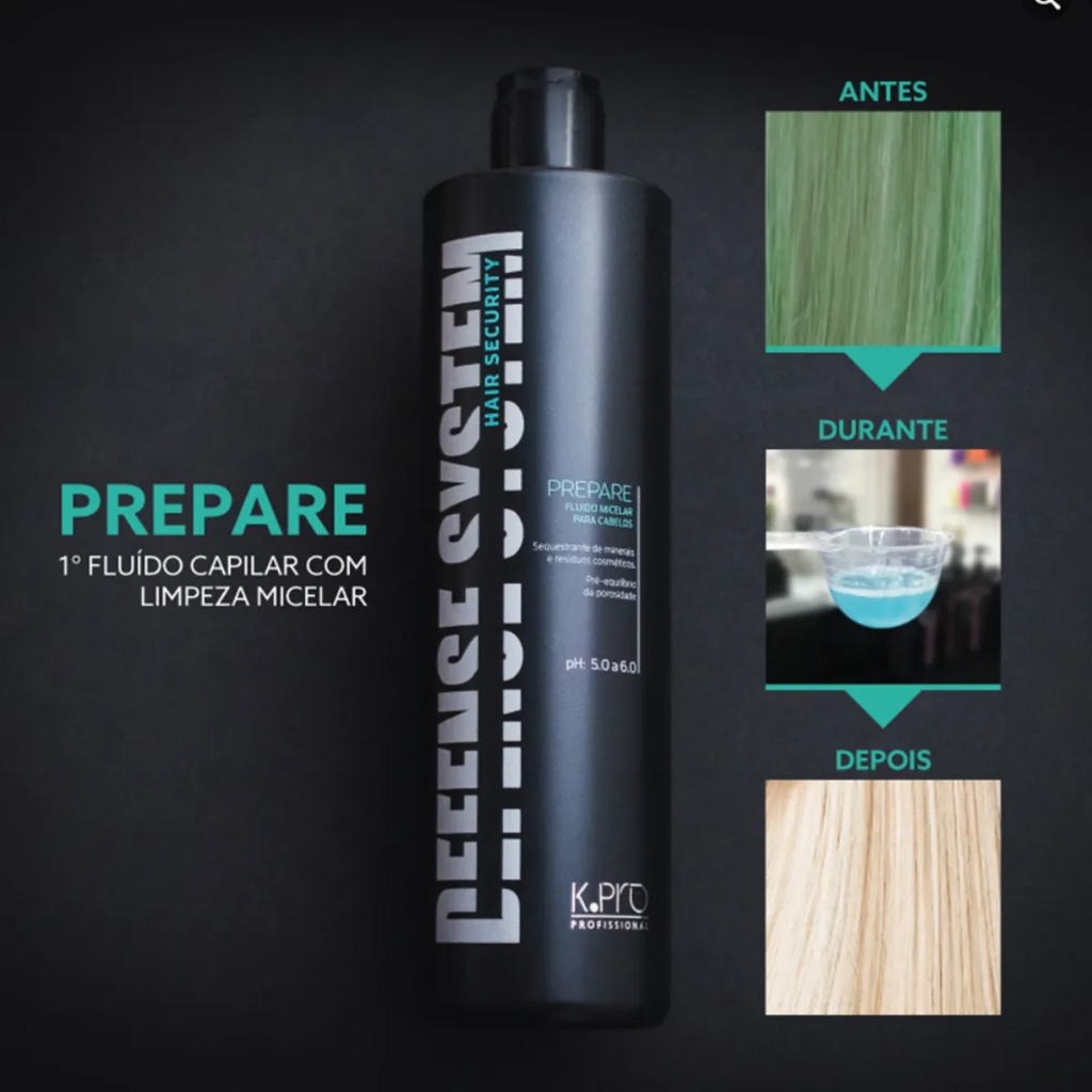 Defense System Prepare Fluído Micelar De Cabelos 500ml Kpro PREPARE é um fluído sequestrante para preparar os cabelos, purificar e eliminar o acúmulo de resíduos minerais (cobre e cloro) e cosméticos. PREPARE desobstrui os fios para evitar reações indesejadas durante os processos químicos e para melhorar o desempenho e absorção dos nutrientes durante os tratamentos cosméticos. Rico em Ácidos Orgânicos (Vinagres orgânicos), e Antioxidantes. Sobre a Linha - Defense System disponibiliza a inovação da tecnologia cosmética para favorecer os Profissionais Cabeleireiros e beneficiar a saúde do cabelo. Fórmula exclusiva da K.Pro Profissional, capaz de agir onde outros tratamentos nunca conseguiram chegar. Defense System alcança a matiz capilar, camada rica em peptídeos e suas importantes ligações cruzadas. Sua ação é defender toda estrutura interna contra as agressões provocadas por agentes oxidantes (pó descolorante, coloração, e outras químicas de transformação). Age também como material de preenchimento e sustentação, com efeito anti-quebra, que fortalece os fios durante e após ações químicas. Tecnologia avançada e exclusiva: K.A.P Complex® - DNA-RNA: Ativo de origem biotecnológica, de baixíssimo peso molecular, que adere e reforça as ligações na matriz do cabelo. - POLIPEPTÍDEOS: Material específico da composição das K.A.Ps. (Keratin-Assiciated Proteins) importante para o preenchimento da matriz capilar. - MINERAIS QUELADOS: Selênio e Silício ligados as proteínas, agem como aderentes e fixadores dos ativos nas regiões saturadas e danificadas dos fios. BENEFÍCIOS: - Prepara os fios fortalecendo-os para receber ações químicas; - Melhora a força da estrutura capilar em 31% durante descolorações (se comparado aos métodos tradicionais); - Diminui as possibilidades de quebra do fio; - Restaura as microestruturas corticais (áreas mais profundas da estrutura capilar); - Evita o ressecamento (efeito comum nos processos de clareamentos tradicionais); - Preserva as camadas mais externas (cutículas), proporcionando suavidade, brilho e melhor penteabilidade. K-Pro – Antenada com o que há de mais inovador em tratamento capilar, possui shampoos com fórmula sulfate free, produtos com proteção solar total e pH’s específicos que equilibram a camada ácida orgânica dos fios. Seus ativos são de alta tecnologia, capazes de reparar os danos e reconstruir a estrutura dos fios com total eficácia.