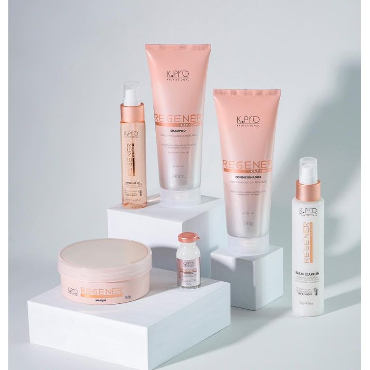 K.Pro Profissional Regenér - Shampoo 240ml Shampoo para cabelos fragilizados e ressecados. recupera a hidratação e brilho dos fios com eficiência e muita leveza. Proporciona uma limpeza profunda e regeneradora. é enriquecido com ácido hialurônico, que ajuda a preencher as partes porosas do fio com muita hidratação e maciez. Além disso, preserva o pH naturalmente ácido dos fios para que as cutículas fiquem seladas e proporcionem brilho extra. Tudo isso, com uma espuma densa, cremosa e muito luxuosa. Conselho de Aplicação Aplique um pouco do produto no couro cabeludo e massageie. Enxágue quando surgir espuma e repita o processo. Leve a espuma da segunda lavagem para as pontas com uma massagem leve, sem atritar. Enxágue completamente.