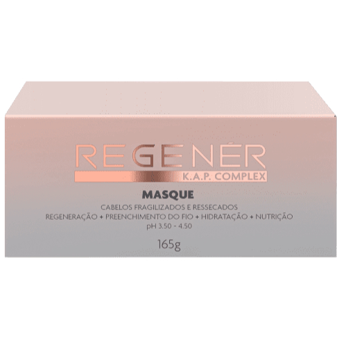 K.Pro Regenér Masque 165g K.Pro Regenér Masque é um tratamento formulado com exclusivo K.A.P. Complex, que proporciona regeneração intensiva de todas as camadas da fibra capilar. K.Pro Regenér Masque proporciona reposição de substancias perdidas durante processos químicos, e/ou agressões do dia a dia, recuperando a resistência e vitalidade, deixando os cabelos brilhante sedosos e naturalmente leves. Proporciona regeneração e fortalecimento intenso dos fios de fora para dentro, preenchendo e hidratando profundamente assim restabelecendo a camada ácida natural dos fios. Recupera a elasticidade e resistência dos fios deixando-os com um brilho e maciez instantâneos. Modo de usar: Aplique K.Pro Regenér Masque mecha a mecha nos cabelos úmidos e limpos. Massageie e penteie com pente de dentes largos, deixe agir de 3 a 5 minutos e enxague totalmente.