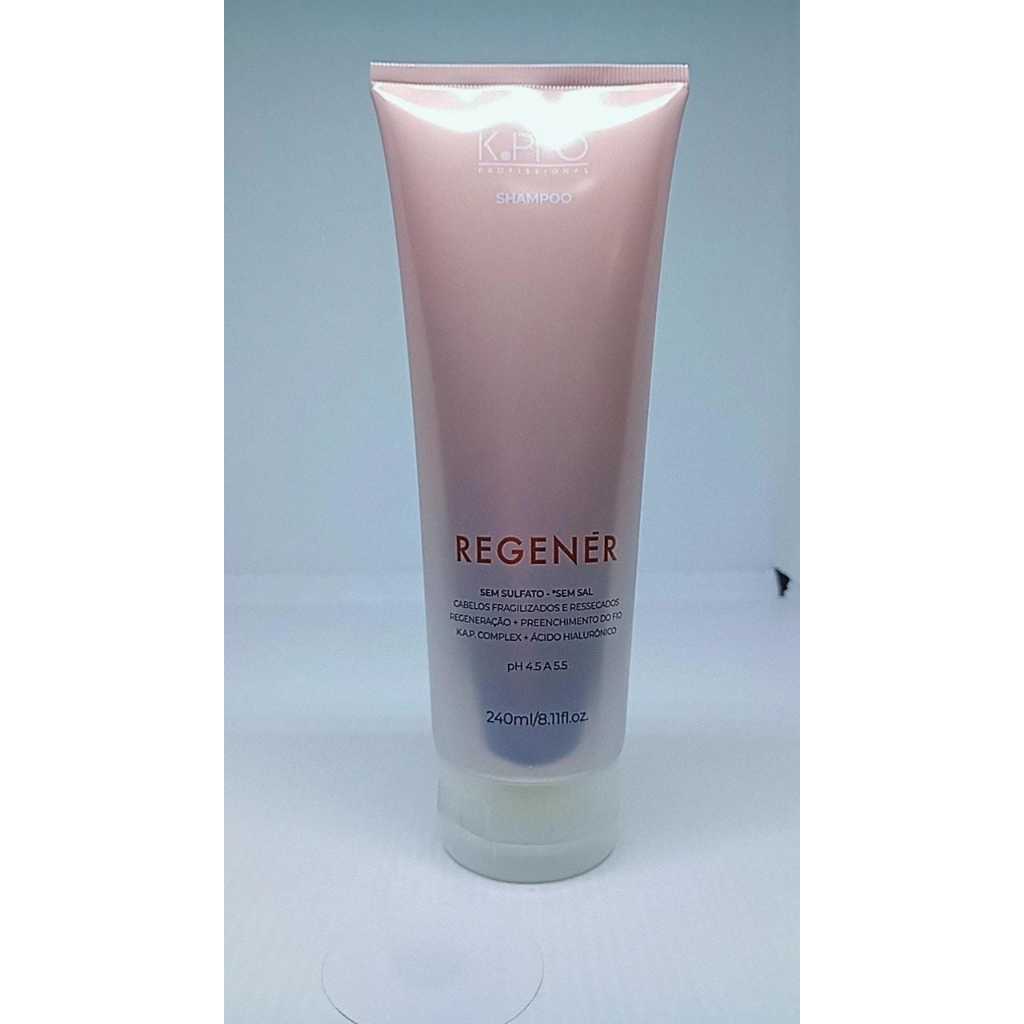 K.Pro Regenér Shampoo para cabelos fragilizados e ressecados. K.Pro Regenér Shampoo recupera a hidratação e brilho dos fios com eficiência e muita leveza. Proporciona uma limpeza profunda e regeneradora. O Shampoo Regenér, de K.Pro, é enriquecido com ácido hialurônico, que ajuda a preencher as partes porosas do fio com muita hidratação e maciez. Além disso, preserva o pH naturalmente ácido dos fios para que as cutículas fiquem seladas e proporcionem brilho extra. Tudo isso, com uma espuma densa, cremosa e muito luxuosa. Conselho de Aplicação Aplique um pouco do produto no couro cabeludo e massageie. Enxágue quando surgir espuma e repita o processo. Leve a espuma da segunda lavagem para as pontas com uma massagem leve, sem atritar. Enxágue completamente.