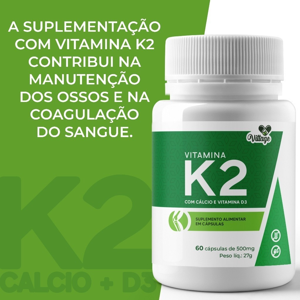 K2 Mk7 Cálcio + vitamina D3 Menaquinona-7 VITTAGE 60 caps 500mg Somos Distribuidores Oficiais de diversas marcas de Excelência e Qualidade! Nosso Objetivo de garantir satisfação total de nosso cliente, com produtos de Excelência e Qualidade para o seu dia a dia, buscando sempre proporcionar a melhor experiência tanto nos produtos quanto no atendimento. Sua satisfação também e a nossa! Todos os produtos acompanham NOTA FISCAL, e nós garantimos sua PROCEDÊNCIA! Agradecemos a visita e esperamos que volte mais vezes. Advertência: Gestantes, idosos, crianças, lactantes e pessoas que apresentam doenças ou alterações fisiológicas, somente devem consumir este produto sob orientação de nutricionista ou médico. IMPORTANTE: Produto autorizado para comercialização em todo o território nacional através do anexo I da RDC 240/2018, em conformidade com a RDC 27/2010 e RDC 23/2000 da ANVISA. VALIDADE DO PRODUTO As validades dos produtos 24 meses!