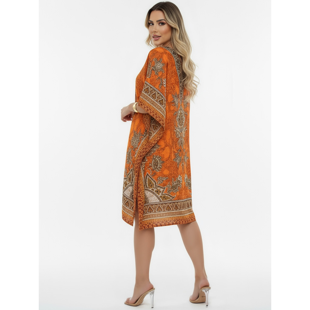 Sinta-se leve, sofisticada e cheia de estilo com o nosso Vestido Kaftan Curto, a peça perfeita para quem busca conforto com um toque de glamour. Feito em tecido fluido e maleável, esse kaftan se adapta ao corpo com caimento impecável, proporcionando liberdade de movimento e frescor nos dias quentes. Seu design boho-chic traz um ar moderno e versátil, ideal para quem ama elegância sem esforço. ✨ Destaques do Kaftan Curto: Design elegante e fluido: corte leve que valoriza a silhueta sem marcar o corpo. Ajuste perfeito: possui laço regulável na cintura, permitindo modelar conforme o seu gosto. Tecido elástico e confortável: estica bastante, garantindo ótimo caimento em diferentes biotipos. Tamanho único versátil: veste do 38 ao 50, adaptando-se facilmente do P ao XG. Versátil e estiloso: ideal para passeios à beira-mar, eventos informais, almoços ou jantares descontraídos. Cores e estampas exclusivas: escolha entre várias opções para expressar o seu estilo único.