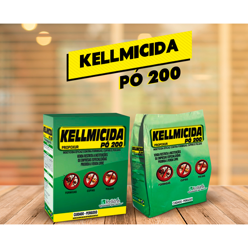 Kellmicida Pó 200 – Combate Formigas, Cupins, Pulgas e Formiga Cortadeira Embalagem 250g O Kellmicida Pó 200 é um inseticida de alta performance indicado para o combate eficaz de formigas, formigas cortadeiras (saúvas e quenquéns), cupins e pulgas. Sua fórmula contém Propoxur 1%, ativo do grupo dos carbamatos que age por contato, inibindo a colinesterase dos insetos e eliminando rapidamente as infestações. Pode ser aplicado diretamente em frestas, ralos, lixeiras, porões, e também insuflado com polvilhadeira diretamente no interior de formigueiros, garantindo maior profundidade de ação. Indicações de uso: - Ambientes residenciais, comerciais e rurais - Controle de infestações em pisos, fendas, galpões, quintais e áreas externas Modo de uso: - Espalhar 50g por metro quadrado - Para formigueiros, usar polvilhadeira e introduzir a mangueira no olheiro Diferenciais: - Rápida ação e efeito prolongado - Fácil aplicação - Ideal para uso direcionado e localizado Atenção: Utilizar Equipamentos de Proteção Individual (luvas, máscara). Mantenha fora do alcance de crianças e animais. Tire suas duvidas no chat, nosso time esta a sua disposição.