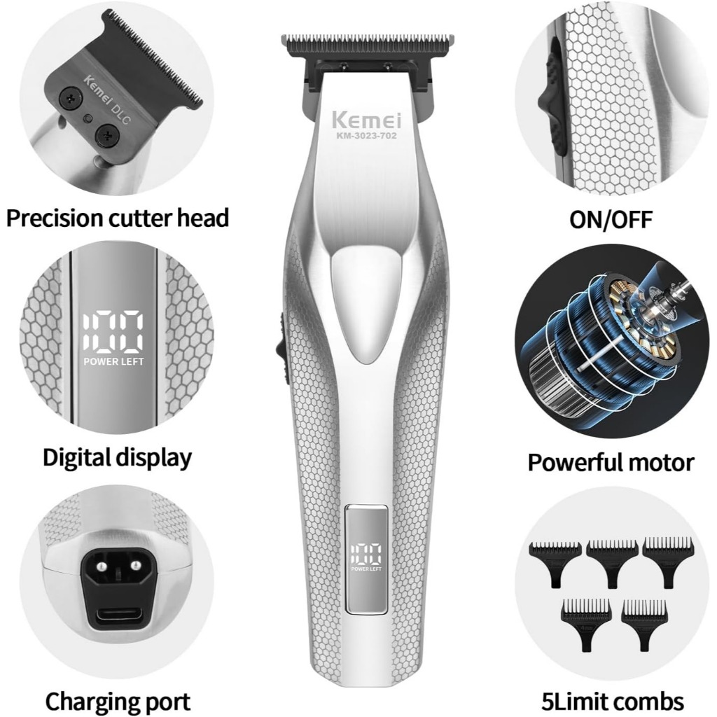 Kemei 3023-702 Zero Gapped Aparador De Cabelo Sem Fio Profissional Máquina De Cortar Masculino Barbeiro Acabamento Recar