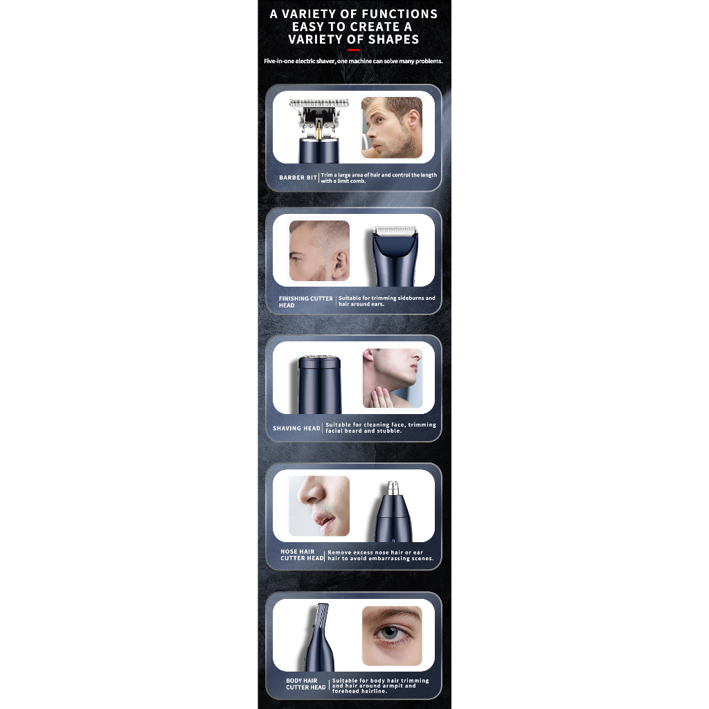 Kemei 5 Em 1 Aparador De Cabelo Multifuncional Sem Fio Com Barbeador Elétrico Recarregável Homem De Orelha