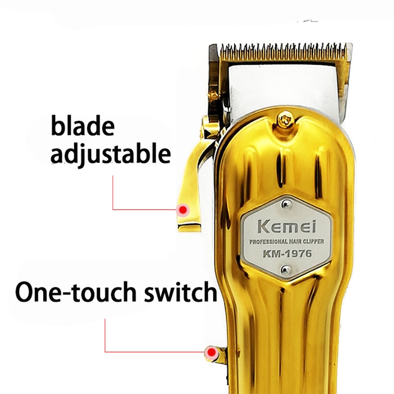 Descrição do produto em inglês após português Especificação do KM-1976 Nome da marca: kemei Gênero: Masculino, feminino. Tipo de energia: Recarregável Uso: Rosto, barba, bigode, barbeiro. Tempo de Uso: 300 minutos Tempo de carregamento: 3 horas Tensão: 100-240V Número do Modelo: KM-1976 Motor: muito poderoso Cor: prata e dourado Material: abs Característica Visor de bateria LCD, Você pode ver claramente a bateria restante Ferramenta de barbeiro profissional, ou uso doméstico 4 guias de corte1.5/3/4.5/6mm) Carregamento rápido e potência forte Acompanha embalagem: 1 x cortador de cabelo 1 x Capa protetora 1 x CABO USB 1 x Pincel para limpeza 1 x Manual 4 x pentes limite Especificação do KM-1973 Nome da marca: kemei Gênero: Masculino, feminino. Tipo de energia: Recarregável Uso: Rosto, barba, bigode, barbeiro. Tempo de Uso: 180 minutos Tempo de carregamento: 3 horas Tensão: 100-240V Número do Modelo: KM-1973 Motor: muito poderoso Cor: prata e dourado Material: abs Acompanha embalagem: 1 x cortador de cabelo 1 x Capa protetora 1 x CABO USB 1 x Pincel para limpeza 1 x Manual 3 x pentes limite Especificação do KM-2028 Marca: Kemei Modelo: KM-2028 Potência&voltagem: 5W,AC 110-240V Tipo de Bateria: 1200mAh Tempo de carregamento: 2.0 Horas Tempo de Corrida: 120 Minutos Incluído no Pacote: 1*máquina, 1* Cabo USB, 1* Pincel para Lançamento, 1* malha de reposição, 1*bag, 1* tampa de protecção e 1*manual ************************************************** specification of KM-1976 brand name: kemei Gender: Male, female. child Power Type: Rechargeable Use: Face, beard, moustache, barber. Usage Time: 300 minutes Charging Time: 3 hours Voltage: 100-240V Model Number: KM-1976 Engine: very powerful Color: silver and gold Material: abs Feature: LCD battery display, You can clearly see the remaining battery professional barber tool , or home use 4 cutting guides1.5/3/4.5/6mm) fast charging and strong power Package included: 1 x hair clipper 1 x Protective cover 1 x USB CABLE 1 x Cleaning brush 1 x Manual 4 x limit combs specification of KM-1973 brand name: kemei Gender: Male, female. child Power Type: Rechargeable Use: Face, beard, moustache, barber. Usage Time: 180 minutes Charging Time: 3 hours Voltage: 100-240V Model Number: KM-1973 Engine: very powerful Color: silver and gold Material: abs Package included: 1 x hair clipper 1 x Protective cover 1 x USB CABLE 1 x Cleaning brush 1 x Manual 3 x limit combs specification of KM-2028 Brand: Kemei Model: KM-2028 Power&Voltage: 5W,AC 110-240V Battery Type: 1200mAh Charging Time: 2.0 Hours Running Time: 120 Minutes Package Included: 1*Machine, 1*USB Cable, 1*Cleaning Brush, 1*replacement mesh, 1*bag, 1*protection cap and 1*manual