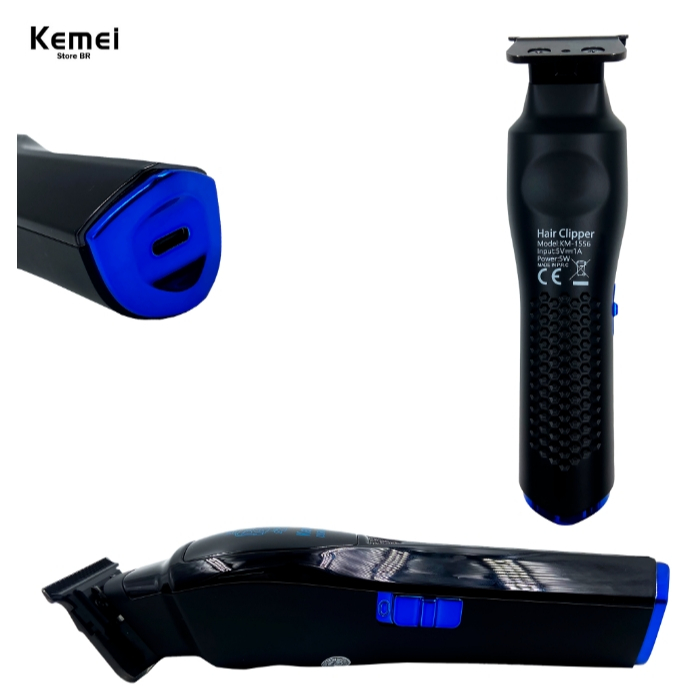 O modelo Kemei-1556 é o que você precisa para manter seus cortes de cabelo sempre em dia! Versátil e Resistente, este modelo pode ser utilizado em casa ou profissionalmente. Possui Display de Led, para acompanhar porcentagem da bateria, é bivolt e acompanha cabo USB para carregamento. Possui RPM de 7.800 e bateria de 2.000mAh Itens na caixa: 1x máquina 1556 4x Pentes Guia (1mm/2mm/3mm/4mm) 1x escova para limpeza 1x Oléo lubrificante para as lâminas 1x manual