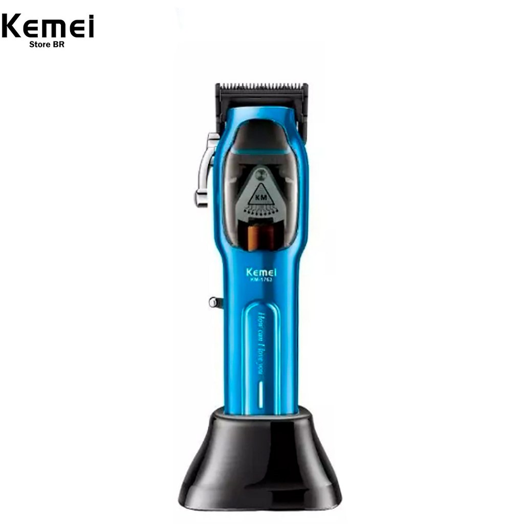 Modelo: KM 1763 10.000 RPM Voltagem: 110-220v Potencia: 10W bateria de Litio 2500mAh Tempo de Carregamento: 3 horas Tempo de uso continuo: 90 minutos Led indicador de bateria Contém: 1 maquina km 1763 1 Protetor de lâmina 6 pentes 1 Cabo carregador USB 1 Base Carregador 1 Pincel de limpeza 1 pente 1 Manual de instrução Disponível nas cores azul e preto, envio SORTIDO de acordo com a disponibilidade em estoque.