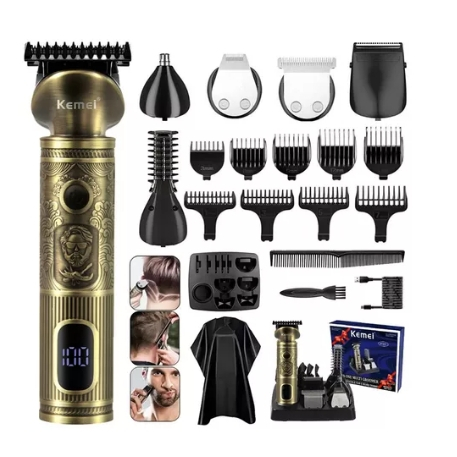 Modelo Novo Kemei 1637 Tela de LCD Baterias de lítio de 1200MAh Carregamento rápido Backup de 2,5 horas Kit de cuidados completo Itens inclusos: 1 Maquina Kemei km 1637 1 Cabeça Cortador de cabelo 1 Cabeça Aparador de precisão 1 Cabeça Aparador Nasal 1 Cabeça Aparador de pelos 1 Cabeça para Barbear 1 Cabo USB para Carregamento tipo C 1 pente 4 pentes limites (1/3/5/7mm) 5 Pente limites (3/6/9/12/15mm) 1 Cabeça Aparador de pelos (3/6/9mm) 1 Base 1 óleo 1 escova de limpeza