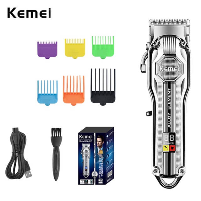 Descrição do produto em inglês após português Precisão PROFISSIONAL: o Cortador Sênior Sem Fio transparente profissional da kemei foi projetado especificamente para fitas e desbotamento tradicionais, desbota a precisão e cortador sobre o trabalho de pente; destinado ao uso profissional. Stylish E FUNCIONAL: Este cortador foi projetado para criar misturas sem costura enquanto linha dura ou macia desbotando com uma alavanca que ajusta a fita e textura; Seu cortador ideal para trabalho sobre pente e para depilação a granel. Especificação Especificação: Nome da marca: kemei Gênero: Masculino Tipo de energia: Recarregável Tempo de uso: 180 minutos Tempo de carregamento: 3 horas Voltagem: 100-240V Número do modelo: KM-517 Motor: muito poderoso Material: abs Conteúdo da Embalagem: 1x máquina 1 x escova 1 x cabo usb 6 x guias de corte ************************************************** PROFESSIONAL PRECISION: kemei's Professional transparent Cordless Senior Clipper was specifically designed for traditional tapering and fading, precision fades and clipper over comb work; intended for professional use. STYLISH AND FUNCTIONAL: This clipper is designed to create seamless blends while hard or soft line fading with a lever that adjusts taper and texture; Its the ideal clipper for over comb work and for bulk hair removal. specification Specification: brand name: kemei Gender: Male Power Type: Rechargeable Usage Time: 180 minutes Charging Time: 3 hours Voltage: 100-240V Model Number: KM-517 Engine: very powerful Material: abs Package content: 1x machine 1 x brush 1 x usb cable 6 x cutting guides