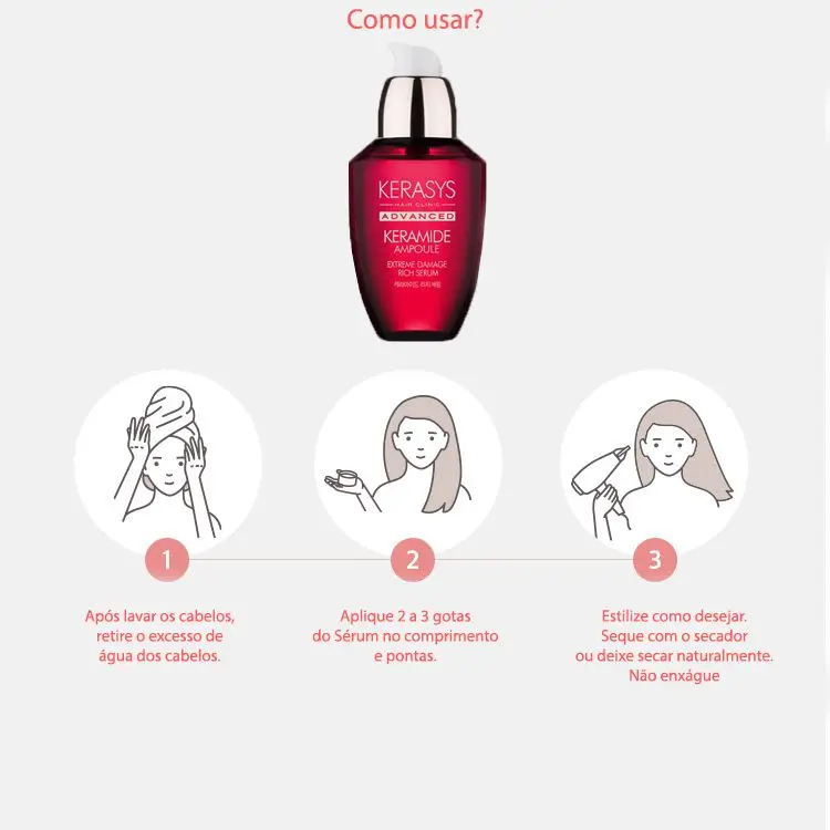 Sérum de cuidado intensivo para recuperar cabelos extremamente danificados e ressecados. O Rich Serum é recomendado para cabelos intensivamente danificados por procedimentos químicos ou mecânicos frequentes. Esse sérum promove a nutrição profunda. Indicado para cabelos que necessitam de cuidados especiais. KERAMIDE acompanha a tecnologia Advanced Ampoule com alta concentração de nutrientes. KERAMIDE é a união de KERAtin e ceraMIDE. (Queratina e Ceramidas) KERATINE – Repara e fortalece a estrutura capilar. CERAMIDE – Hidrata e protege contra a perda de nutrientes. Contém um complexo de 5 óleos altamente nutritivos. Óleo de Argan, Jojoba, Abacate, Baobab e Moringa. Conselho de aplicação: Conselho de Aplicação Aplique de 1 a 2 pumps, de acordo com o comprimento dos fios, no cabelo úmido ou seco. Passe do comprimento às pontas. Não enxague. Estilize como desejar. Resultados: Cabelos nutridos, com brilho e protegidos..