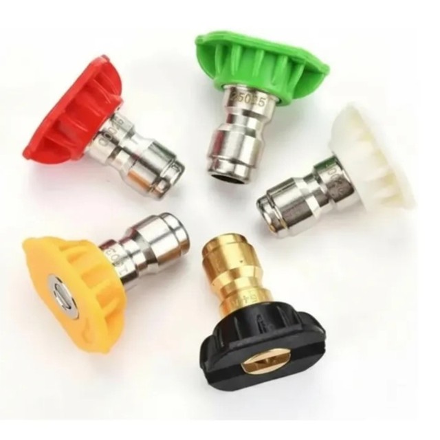 Bem-Vindo(a) à AT4U - Loja Oficial KIT 5 BICOS PARA LAVADORA DE ALTA PRESSÃO – ENGATE RÁPIDO E LIMPEZA PRECISA O Kit com 5 Bicos para Lavadora de Alta Pressão é indispensável para quem busca eficiência, versatilidade e praticidade na limpeza. Com diferentes ângulos de jato, cada bico oferece uma função específica, permitindo ajustar a pressão e o tipo de limpeza conforme a necessidade — desde remoções pesadas até enxagues delicados. Compatível com lavadoras de 1900 PSI a 4500 PSI, possui encaixe de engate rápido, facilitando a troca entre os bicos durante o uso. - 5 ângulos diferentes: escolha o jato ideal para cada tipo de limpeza. - Encaixe rápido universal: compatível com a maioria das lavadoras de alta pressão. - Maior precisão: facilita o direcionamento do jato e melhora a eficiência. - Alta durabilidade: fabricado em aço inoxidável, latão e plástico resistente. - Uso versátil: ideal para limpeza de veículos, pisos, muros, fachadas e quintais. IDENTIFICAÇÃO DOS BICOS - Bico Vermelho (0°): jato concentrado e de alta pressão para sujeiras difíceis. - Bico Amarelo (15°): ideal para remoção de sujeira pesada em superfícies resistentes. - Bico Verde (25°): limpeza de uso geral, indicado para pisos e calçadas. - Bico Branco (40°): jato suave, ideal para veículos, vidros e superfícies delicadas. - Bico Preto (65°): jato de enxágue e aplicação de sabão ou detergente. CARACTERÍSTICAS TÉCNICAS Marca: Kers Pressão compatível: 1900 PSI – 4500 PSI Tipo de encaixe: Engate rápido universal Material: Aço inoxidável, latão e plástico Tamanho (cada bico): 3 × 2,1 × 3 cm Quantidade: 5 unidades Cores: Vermelho, Amarelo, Verde, Branco e Preto CONTEÚDO DA EMBALAGEM 01 Kit com 05 unidades de Bicos Kers para Lavadora de Alta Pressão IMPORTANTE: Postagem em até 24h Entrega Garantida Produtos Originais e Certificados COMPRE COM SEGURANÇA Tire suas dúvidas via chat com nossos especialistas