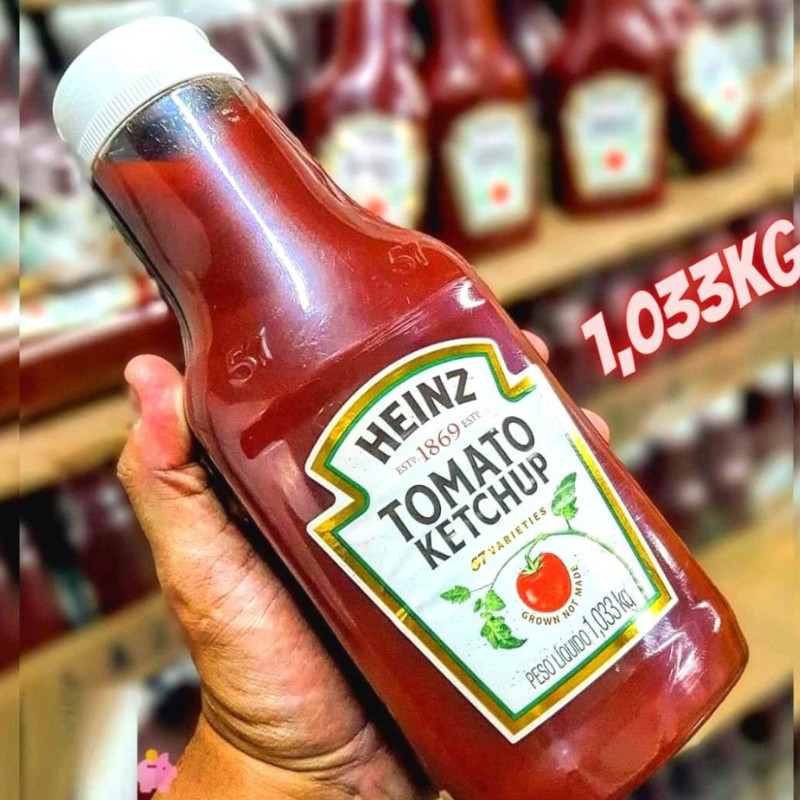 O Ketchup Heinz Tradicional 1,033 kg é uma embalagem de tamanho família, ideal para quem consome o produto com frequência em casa, estabelecimentos comerciais ou em eventos. Ele é conhecido por sua receita original e sabor marcante, que se mantém consistente desde sua criação. Características Ingredientes: A receita do Ketchup Heinz Tradicional é famosa por ser feita com apenas 6 ingredientes 100% naturais: tomate, açúcar, vinagre, sal, cebola e aroma natural. A Heinz afirma não utilizar conservantes, espessantes ou corantes artificiais. Glúten: A fórmula é livre de glúten. Embalagem: É geralmente comercializado em embalagem tipo squeeze, que facilita a aplicação e o armazenamento. Sabor e Versatilidade: O sabor equilibrado entre doçura e acidez o torna um acompanhamento popular para diversos pratos, como hambúrgueres, batatas fritas, cachorros-quentes e salgados. Informação nutricional (por 100 g) Segundo o Delivery Fort, que vende a embalagem de 1,033 kg, a tabela nutricional para 100 g do produto é a seguinte: Valor calórico: 14 kcal (1% do valor diário recomendado) Carboidratos: 3,3 g (1% do valor diário recomendado) Proteínas: 0 g (0% do valor diário recomendado) Gorduras totais: 0 g (0% do valor diário recomendado) Gorduras saturadas: 0 g (0% do valor diário recomendado) Gordura trans: 0 g