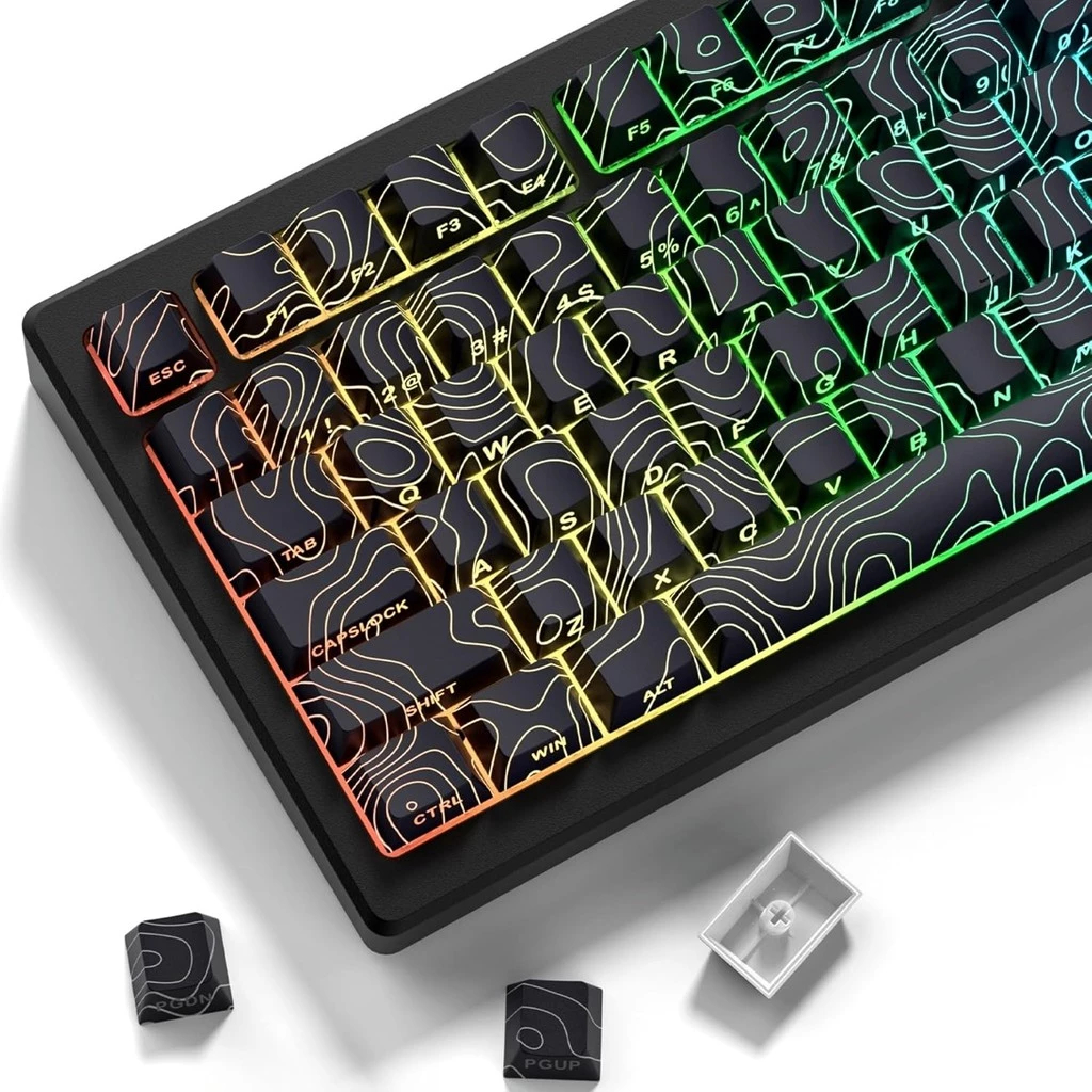 Keycaps Topográficas 97 Teclas PBT Doubleshot Preto / Branco + Removedor de Teclas - Resistentes | Bonitas