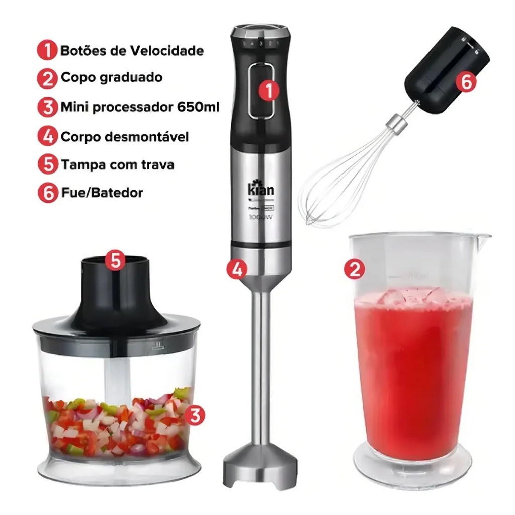 | KIAN MIXER 1000W 3X1 INOX TURBO PRETO 127V este produto | R$ 162,90 | 17% | 4.9/5 | 5 |