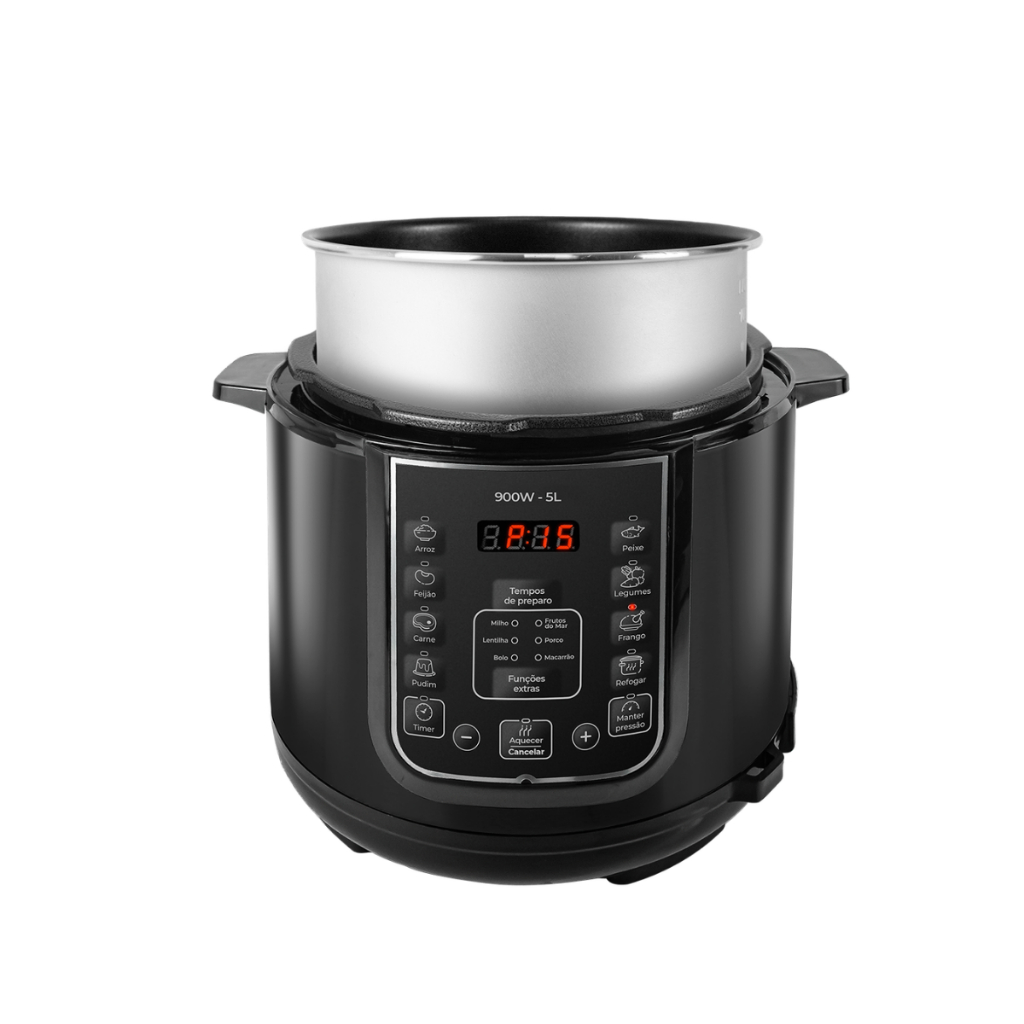 A Panela de Pressão Elétrica 5 Litros Kian PPE-101 é a solução ideal para quem busca praticidade e eficiência na cozinha. Com uma potência de 900 W, ela permite o cozimento rápido e saboroso de diversos pratos, como feijoada e feijão, garantindo refeições deliciosas em menos tempo. Seu design em inox confere um toque moderno, além de proporcionar durabilidade e facilidade na limpeza. A capacidade de 5 litros é perfeita para preparar porções generosas, ideal para famílias ou encontros com amigos. A panela conta com um sistema de cozimento a pressão, desligamento automático e função manter aquecido, oferecendo segurança e conveniência. A tela digital e a programação facilitam o uso, permitindo que você ajuste o tempo e a temperatura conforme sua necessidade. Inclui acessórios como copo medidor e colher, tornando o processo de preparo ainda mais simples. O revestimento antiaderente garante que os alimentos não grudem, facilitando a limpeza após o uso. Com a Panela de Pressão Elétrica Kian, você transforma sua experiência culinária em algo prático e prazeroso. Potência: 900 W Tipo de produto: Panela Capacidade em volume: 5 L Material da tampa: Aço inoxidável Sistema de cozedura: A pressão Com desligamento automático: Sim Com função manter aquecido: Sim Inclui acessórios: Sim Acessórios incluídos: Copo medidor, Colher É programável: Sim Com revestimento antiaderente: Sim Com tela digital: Sim Materiais: Aço inoxidável *Imagens meramente ilustrativas