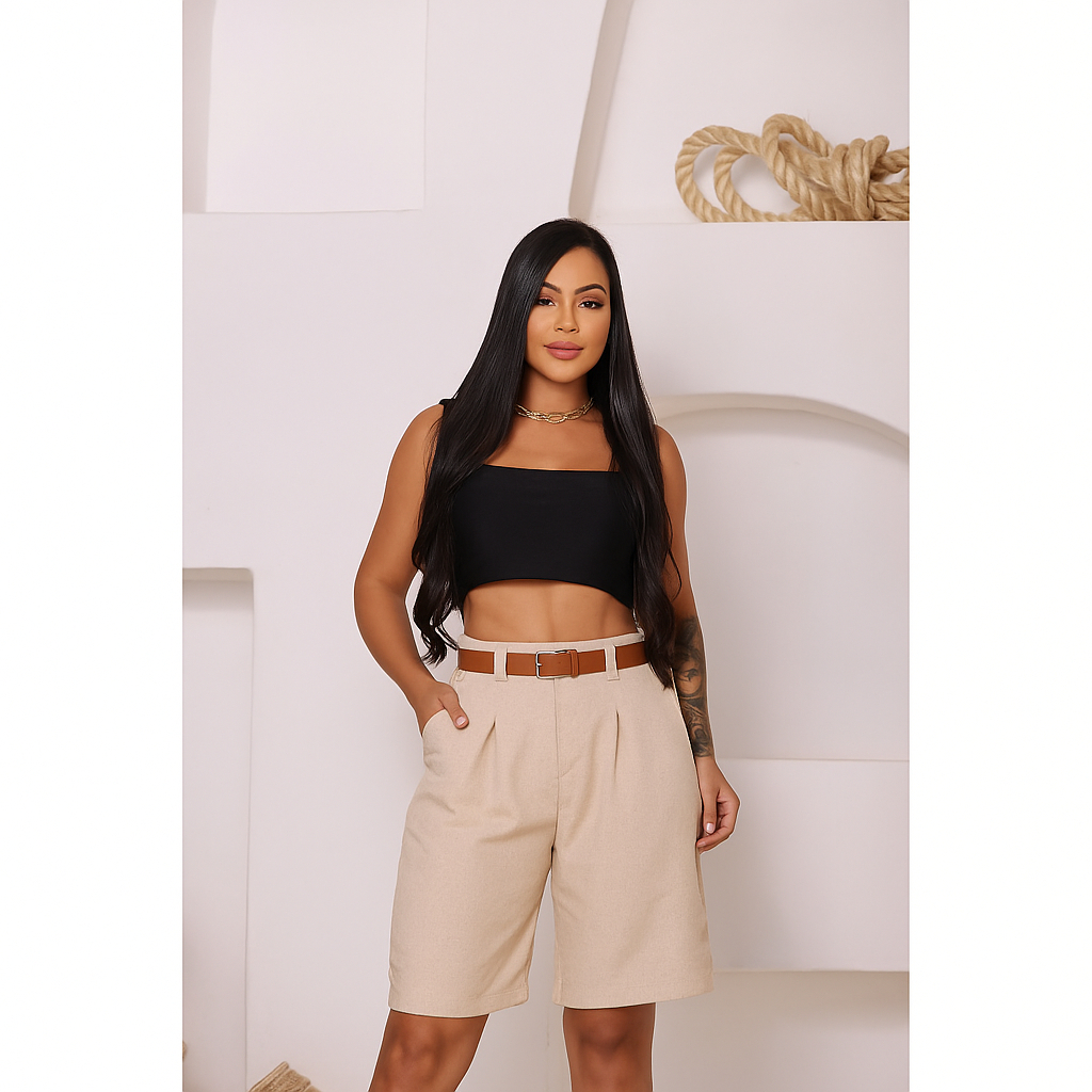 Kid 2 Peças do Bermuda Feminina de Linho com Cinto é a escolha perfeita para mulheres que valorizam conforto aliado à elegância. Seu design em alfaiataria garante sofisticação, enquanto o tecido de linho traz leveza e frescor, ideal para os dias mais quentes ou para compor looks refinados em qualquer ocasião. Com cintura alta e zíper frontal, a peça proporciona caimento impecável, valorizando a silhueta. Os bolsos laterais funcionais trazem praticidade sem perder o charme, e o cinto do mesmo tecido adiciona um toque moderno, permitindo melhor ajuste e acabamento na cintura. Essa bermuda é extremamente versátil: pode ser usada em ambientes casuais ou formais, combinando perfeitamente com blusas leves, camisas sociais, croppeds ou até mesmo blazers. É uma peça coringa que transita facilmente do trabalho ao lazer, sempre mantendo um visual elegante e atual. 📏 Tamanhos disponíveis: M, G e GG 🎨 Cores disponíveis: Bege Preto ✔️ Conforto e estilo em um só modelo ✔️ Ideal para compor looks sofisticados e modernos ✔️ Peça atemporal que nunca sai de moda Invista na bermuda feminina de linho e tenha em seu guarda-roupa uma opção prática, versátil e cheia de estilo! TABELA DE MEDIDA: - M: 40cm - G: 42cm - GG: 44cm A Dispociçao 24 H