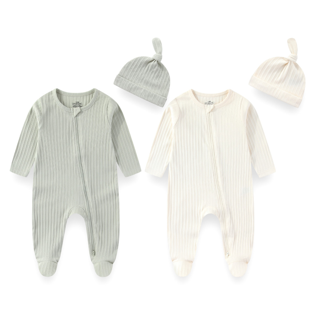 Kiddiezoom 7 Cores Sólidas Unissex Roupas Para Bebês Recém-Nascidos Meninos E Meninas 2 Macacões + 2 Chapéus Conjuntos D