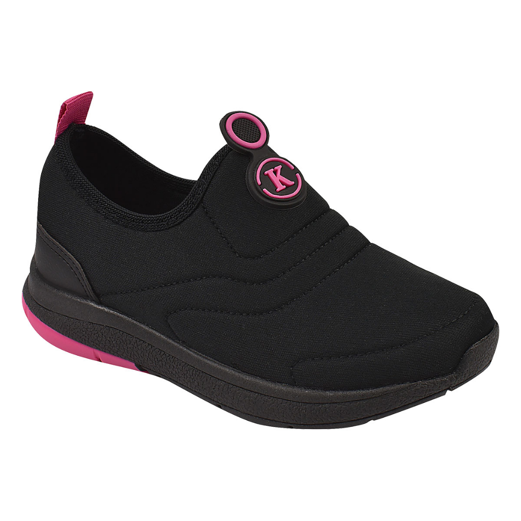 Kidstep Tenis Escolar Infantil Calce Fácil K Feminino Preto com Pink 28 ao 36