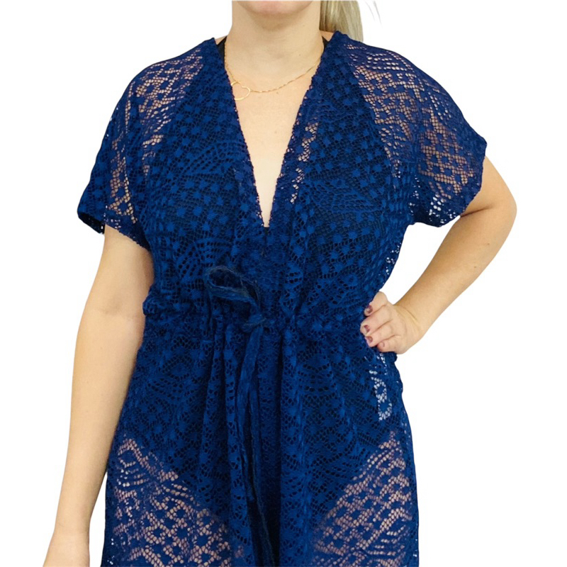 Saída de praia kimono decido renda de arrastão fácil de vestir e sempre na moda para quem procuram algo mais sensual pois a saída é transparente mostra o biquíni temos curtas e midi.