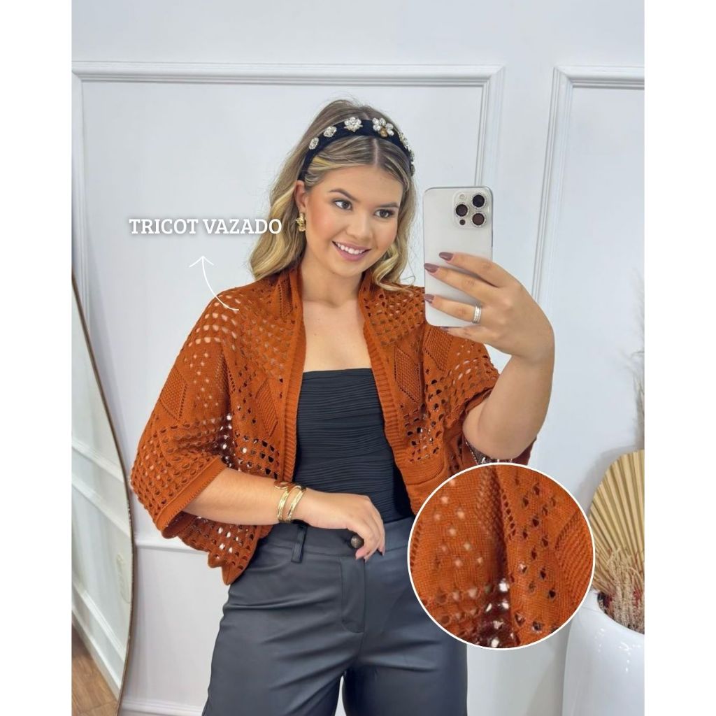 ✨ Kimono Feminino Casulo em Tricot Ponto Crochê – Leveza, Elegância & Versatilidade Atemporal e extremamente versátil, o Kimono Feminino Casulo em Tricot é a peça ideal para transformar qualquer produção com leveza e sofisticação. Seu design com modelagem ampla estilo casulo proporciona caimento fluido e confortável, valorizando o visual sem marcar o corpo. Os pontos trabalhados em crochê trazem charme artesanal e delicadeza, tornando a peça perfeita tanto para composições casuais quanto para propostas mais elegantes. Um verdadeiro curinga para usar o ano inteiro. 🌟 Lançamento exclusivo Fashion Pink – direto da fábrica para você. 🧶 Detalhes do Produto: • Modelagem estilo capa casulo • Shape amplo com caimento leve • Trabalhado em ponto crochê • Abertura frontal (sem botões) • Não marca o corpo • Leve, confortável e versátil 📏 Tamanho: Tamanho único – veste do 36 ao 46 Medidas aproximadas (sem esticar): • Comprimento: 70 cm • Largura: 50 cm 🧵 Composição: • 100% Poliéster • Fio 2/28 – 4 cabos • Toque macio e resistente • Excelente durabilidade 💡 Sugestões de Uso: • Com top e short jeans para um look casual • Como saída de praia sobre biquíni • Sobre vestido ajustado para um visual elegante • Com alfaiataria para produções mais refinadas 🧼 Cuidados com a Peça: • Lavar à mão com sabão neutro • Não utilizar alvejante • Não torcer • Secar à sombra • Passar em temperatura mínima, se necessário ❓ Perguntas Frequentes (FAQ): A peça esquenta muito? Não. O tricot em ponto crochê possui trama leve e arejada, ideal para diferentes estações. Marca o corpo? Não. A modelagem ampla estilo casulo proporciona caimento solto e confortável. Pode haver variação nas medidas? Sim. Por se tratar de tricot, pode ocorrer pequena variação de até 1 a 2 cm. As cores podem variar? Pode haver leve alteração conforme iluminação ou configuração de tela. ✨ Uma peça-chave que eleva qualquer look com charme e autenticidade. Versátil, elegante e indispensável no guarda-roupa feminino.