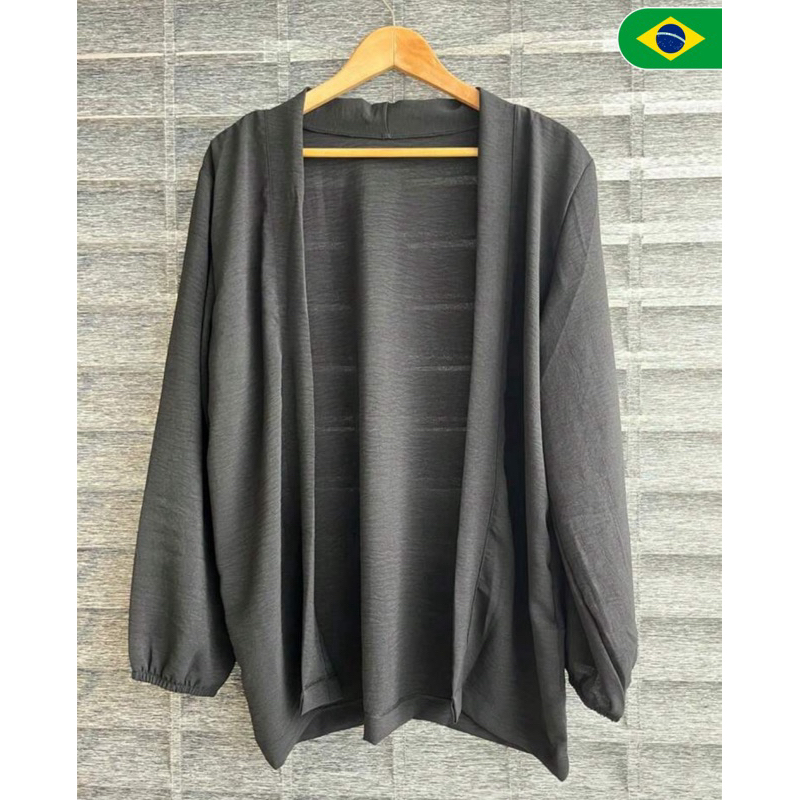 Kimono Saida de praia feminina ELEGANTE curto camisa manga longa blusao simples sem botao verao