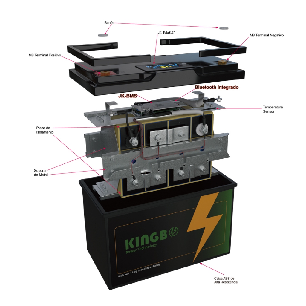 | Kingbo Power 12V 100Ah Bateria Lifepo4 12.8V com Bluetooth JK BMS p... este produto | R$ 1.899,00 | 71% | 5.0/5 | 2 |