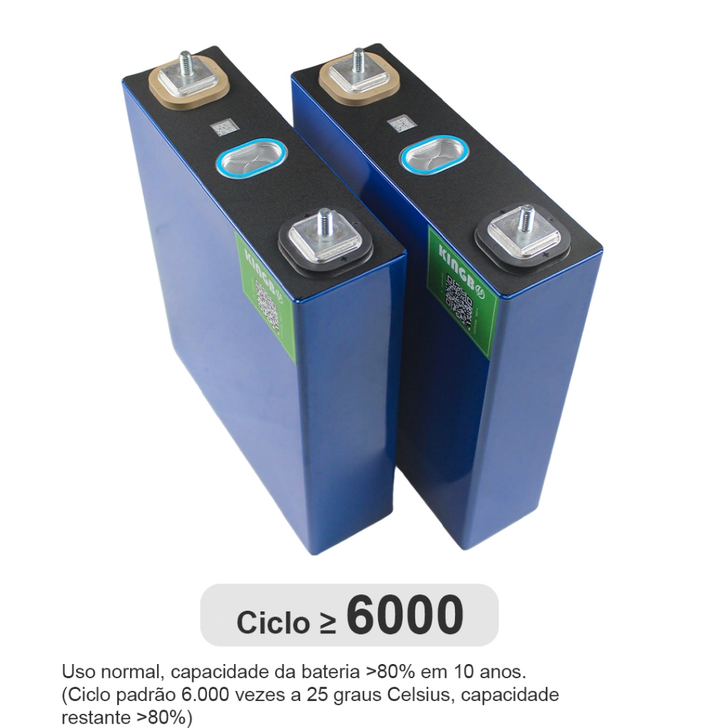 Dicas especiais: 1. Ao carregar e descarregar a bateria, certifique-se de que haja condições adequadas para monitorar e proteger a tensão, a corrente e a temperatura da bateria. 2. Mantenha a bateria longe de fontes de calor, fogo ou ambientes corrosivos, como ácidos e álcalis fortes. 3. Não misture baterias de modelos ou fabricantes diferentes. 4. As baterias devem ser armazenadas (por mais de um mês) em um ambiente limpo, seco e bem ventilado, com temperatura ambiente de 0 °C a 35 °C. Carregue e descarregue a bateria a cada três meses. Armazene-a com carga (30% a 50% SOC). Parâmetro: Número do modelo:XD206 Tensão nominal:3.2 V Capacidade nominal:206Ah Tipo:FéPO4 Energia nominal:659.2Wh Vida útil em ciclo padrão:≥6000 ciclos Corrente de carga/descarga padrão:206A / 1C Corrente máxima de descarga:309A / 1.5C Aplicação:Energia Doméstica,armazenamento de energia solar,sistema de energia solar fora da rede, empilhadeiras, carrinhos de golfe, equipamentos de pulverização Informações da embalagem: Dimensão do produto:174*54*205mm Dimensão do pacote:325*260*300mm (2 PCS)