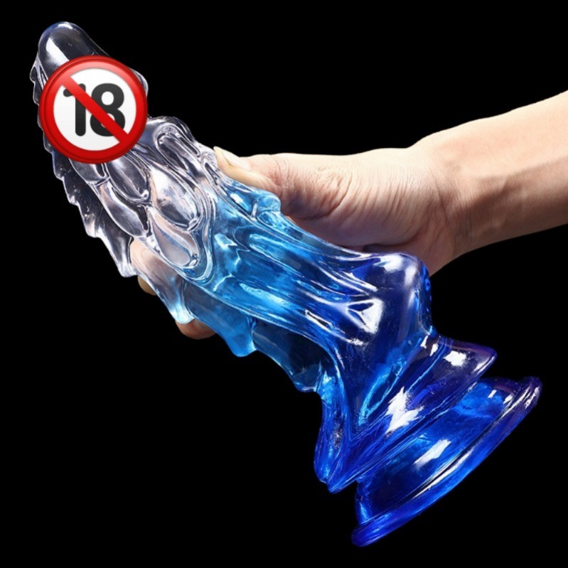 Kirin pênis grande silicone grande plug anal com ventosa 22*6.7 cm peso 432 gramas azul transparente