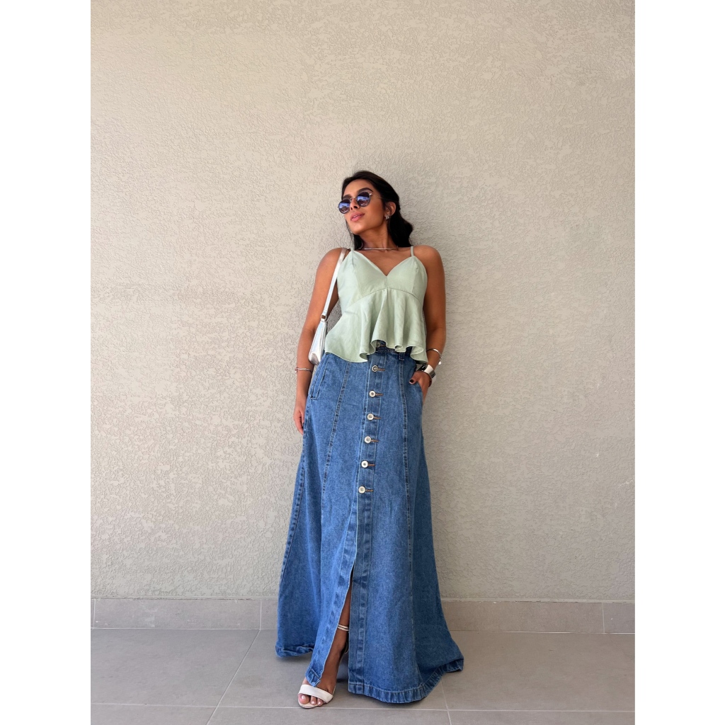 kissmelady 1023 saia longa jeans feminina sem rascada