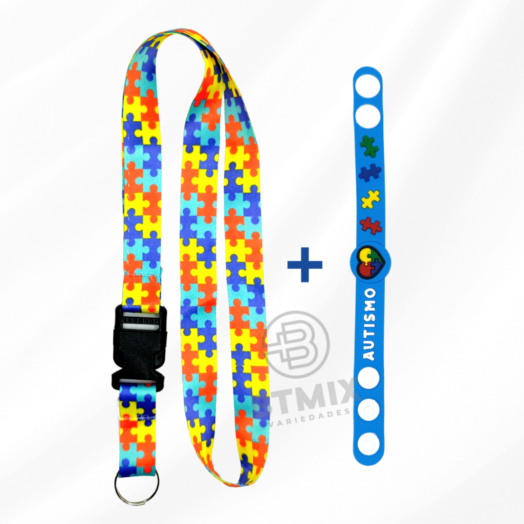 Kit 01 Cordão + 01 Pulseira Autismo Identificação Autista Escolha o Modelo