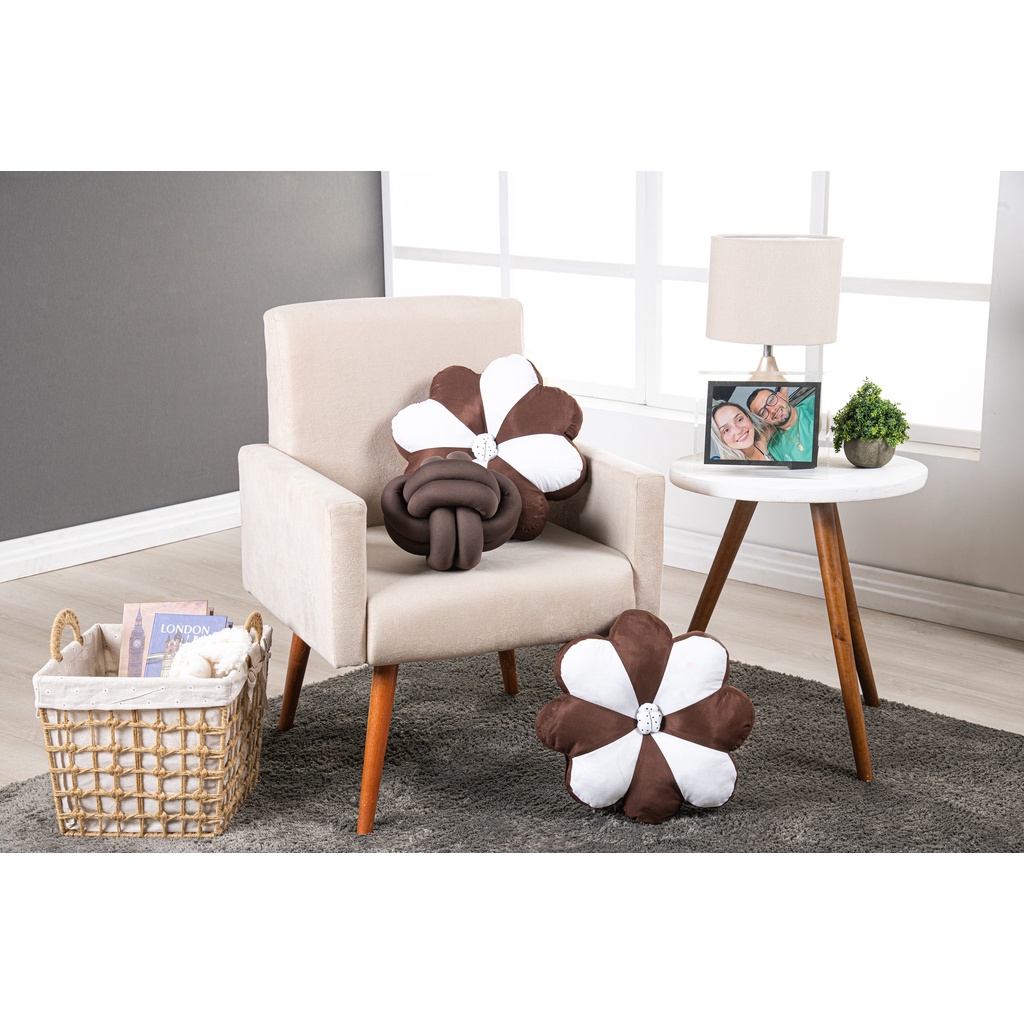 Kit 02 Almofadas Flor Decorativa mais uma Almofada Nozinho Luxo Premium Confeccionada em tecido 100% poliéster, um tecido nobre de ótima qualidade e durabilidade. Isso proporciona mais conforto, um toque agradável, ideal para qualquer ambiente e estação. Ambiente: Decoração para Quarto, Sala ou o que a sua imaginação mandar! Afinal, nossas almofadas são lindas e combinam com tudo. Medidas Flor: 35cmx35cm Medidas Nozinho: 25cmx25cm Composição: Tecido: 100% Poliéster Enchimento: 100% Poliéster Manta Siliconada Lembre-se de tomar os devidos cuidados: -Lavar a mão. -Não alvejar. -Não usar secadora. -Secar sem torcer. -Não passar. -Não limpar a seco. Fazendo isso suas almofadas vão ter muito mais durabilidade.