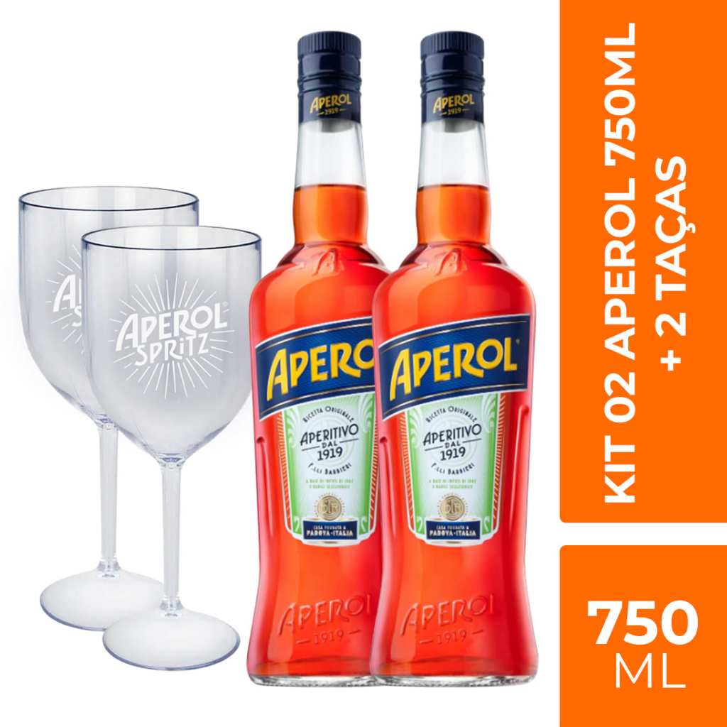 ATENÇÃO *Imagens meramente ilustrativas* *O Kit companha 2 taças personalizadas em acrílico* Aperitivo Aperol. Aperol Spritz é o autêntico drink italiano. Criado em 1919 e com uma receita inalterada até hoje, o Aperol tem baixo teor alcoólico (11%). Aperol Spritz é a bebida ideal para todas as ocasiões sociais, para os momentos de convívio com amigos e colegas. Seu sabor marcante de laranja levemente adocicado, fazem com que Aperol seja o acompanhamento perfeito para um dia de sol, um happy hour ou até mesmo em uma reunião informal em casa ou onde preferir. O Aperol é um aperitivo italiano de cor laranja brilhante, possui um sabor único graças a sua receita secreta a base de infusões com ingredientes especialmente selecionados, incluindo laranjas doces e amargas, além de várias outras ervas aromáticas e raízes. Sua principal receita surgiu no verão italiano, misturou-se Aperol com o espumante Prosecco e assim foi criado o famoso Aperol Spritz! Graduação Alcoólica 11%. Contém 750ml. Aperitivo Fabricado no Brasil. Ingredientes: Cubos de gelo 150ml de prosecco 100ml de aperitivo aperol 50ml de água mineral com gás 1 rodela de laranja-baía Em uma taça grande de vinho, coloque primeiro o prosecco. Em seguida, acrescente o aperitivo aperol e depois a água com gás. Adicione as rodelas de laranja a gosto e misture bem. Acrescente gelo a gosto. É importante seguir a proporção: Três partes de prosecco, duas partes de aperol e uma parte de água com gás.