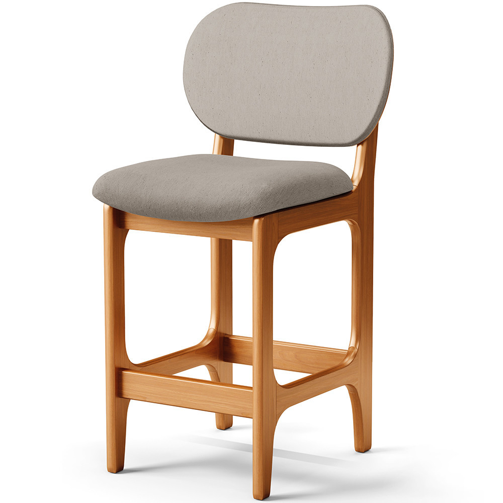 Kit 02 Banquetas Baixa Bar Cozinha E Sala De Jantar Fixa Betta L02 Imbuia Linho Bege - Lyam Decor