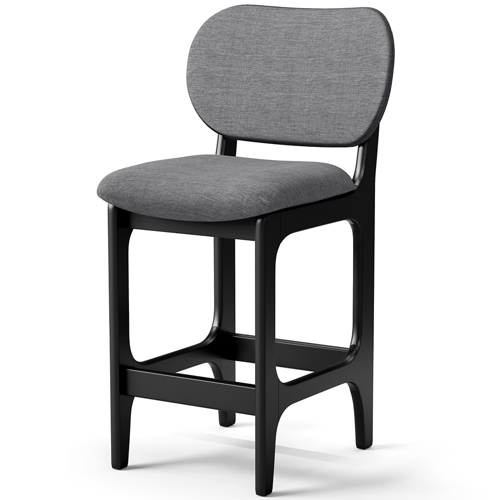 Kit 02 Banquetas Baixa Bar Cozinha E Sala De Jantar Fixa Betta L02 Preto Linho Cinza Escuro - Lyam Decor