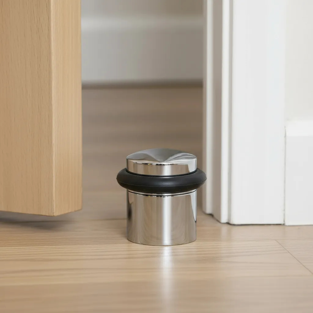 Amortecedor batedor com anel de borracha para portas em geral. Parte superior fechada para não acumular poeira/sujeira. Este produto evita que a porta bata na parede, evitando dano na maçaneta, parede/azulejo. Especificações: Modelo: Piso/Chão Diâmetro: 31 mm Altura: 32 mm Material: Alumínio Acabamento: Polido / Brilhante Descrição Técnica :AMORTECEDOR PARA PORTAS COM BATENTE DE BORRACHA E FIXAÇÃO NO PISO. Embalagem: 02 - Peça Amortecedor com parafuso e bucha 06.mortecedor batedor com anel de borracha para portas em geral.