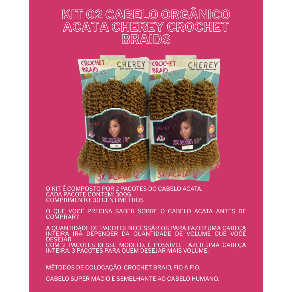 | Kit 02 Cabelo Orgânico Acata Cherey Crochet Braids este produto | R$ 208,97 | — | 5.0/5 | 1 |