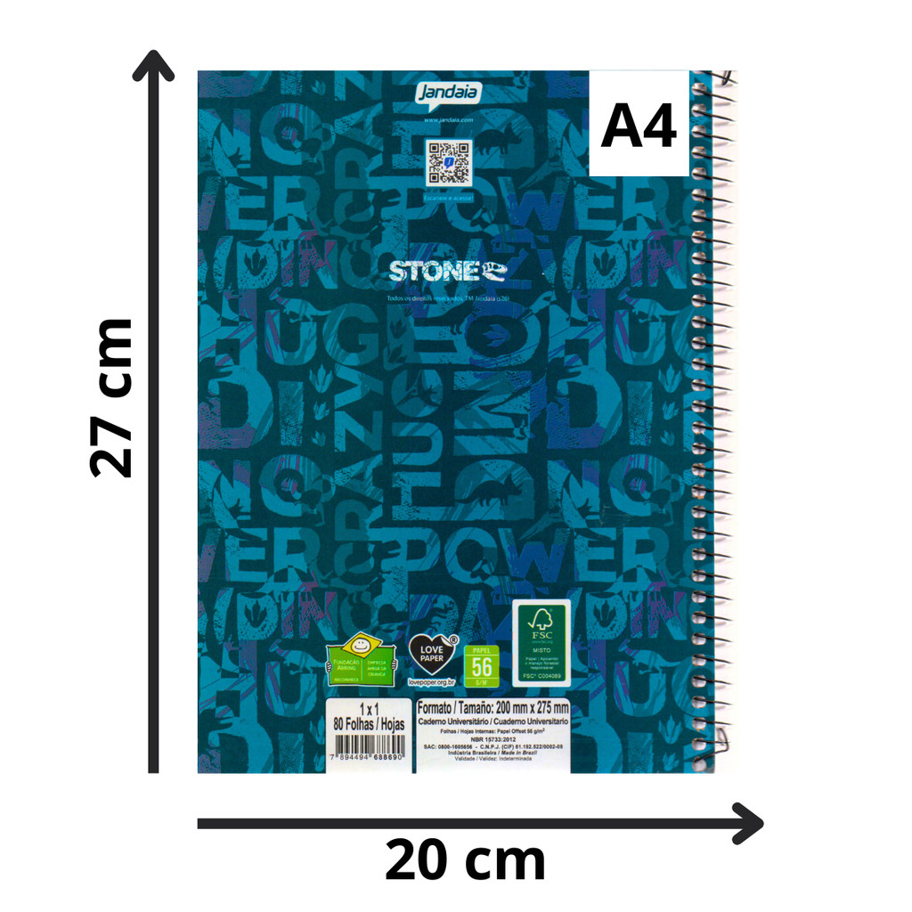 KIT 02 CADERNOS UNIVERSITÁRIO Stone 1 MATÉRIA – SEU ESTUDO MAIS ANIMADO! Pedidos até às 11h (seg a sex) = Envio no mesmo dia! DESCRIÇÃO: Formato: 20x27,5cm (ideal para todas as matérias) Capa dura: proteção e durabilidade 80 folhas: mais espaço para suas anotações 1 matéria: organização completa Acabamento premium: UV reserva e laminação fosca COMPOSIÇÃO: Papel de alta qualidade Arame resistente Plástico durável Adesivos personalizados kit com 2 cadernos POR QUE ESCOLHER ESTE CADERNO? Design exclusivo: Dinossauro, a saga mais emocionante! Qualidade: Jandaia, a marca que você confia Organização: 1 matéria para manter tudo em ordem Durabilidade: Capa dura e acabamento resistente - CADERNO UNIVERSITÁRIO Stone 1 MATÉRIA